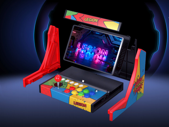 Дополнительно к планшету можно докупить фирменный аксессуар, позволяющий превратить планшет в портативную игровую консоль с удобными физическими органами управления, а также док-станцию в виде ретро-автомата для игр.