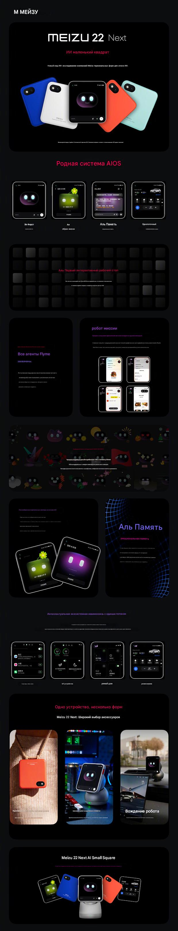 Это маленький квадратный девайс с 4" экраном, предназначенный для запуска различных ИИ-агентов. Прошивка гаджета, основанная на Flyme AIOS, позволяет ИИ-агентам, помимо прочего, коммуницировать друг с другом, выполняя задачи совместно. Кроме того, интерфейс устройства активно сохраняет сведения о личности, настроении и здоровья пользователя, чтобы использовать их в дальнейших разговорах. Также Meizu 22 Next может управлять какими-то IoT-устройствами.