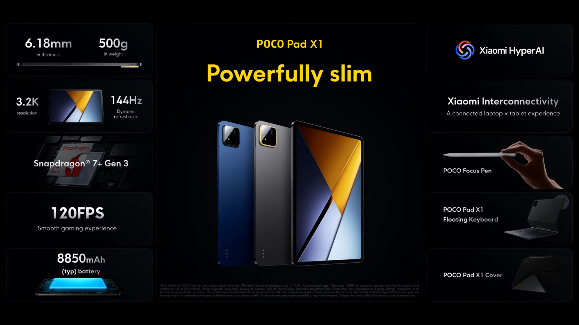 К счастью, никаких даунгрейдов по пути на глобальный рынок планшет не пережил: он оснащён тем же чипом Snapdragon 7+ Gen 3, сверхплавным 144-Гц IPS-экраном с разрешением 3.2K и диагональю 11,2", стереозвуком на основе четырёх динамиков и быстрым портом USB 3.2 Gen 1 Type-C с 45-Вт технологией зарядки батареи на 8850 мАч. На прилавки POCO Pad X1 поступил в единственной конфигурации 8/512 ГБ за $399 (32 400 рублей).