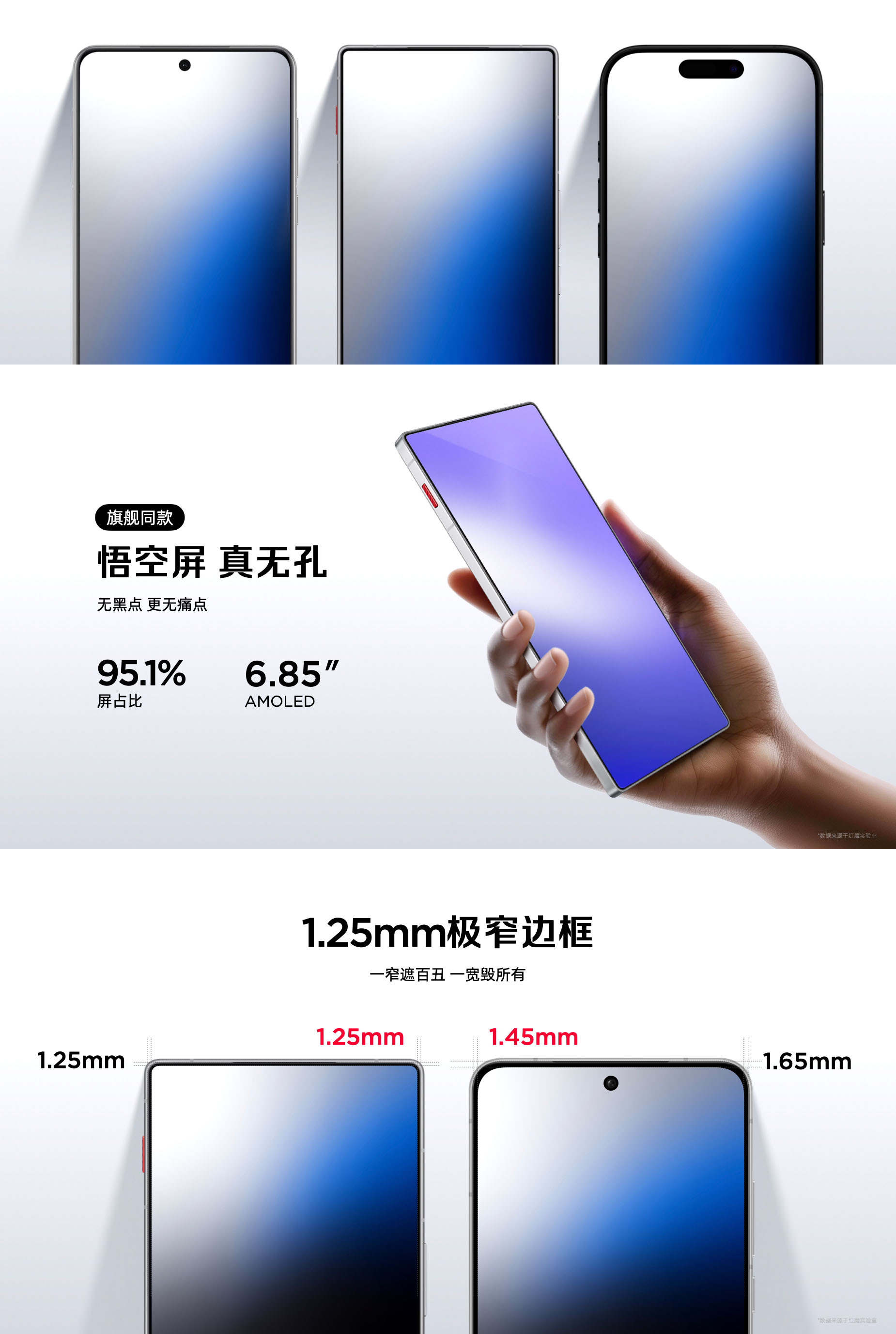 Большой акцент ZTE делает на дизайн, который у неё традиционно хорош: улучшенный 6,85" AMOLED-экран с ещё более узкими 1,25-мм рамками, невидимая 16-Мп фронталка под панелью, а также «прозрачная» эстетика стеклянно-металлического корпуса с микроскруглениями, благодаря которым грани корпуса не впиваются в руку.