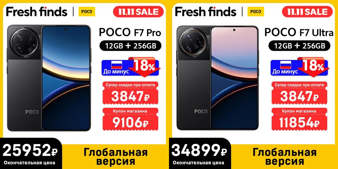 Технику Xiaomi часто описывают как "топ за свои деньги" и в особенности это касается бренда её смартфонов POCO. Чего только стоит семейство POCO F7, включающее три сильнейших смартфона в ценовых диапазонах 20, 25 и 35 тысяч рублей. Базовый POCO F7, который завтра обновит рекорд самой низкой цены в своей истории, попросту не имеет конкурентов по сочетанию начинки и стоимости. Мощный чип Snapdragon 8s Gen 4, большой экран с узкими рамками, батарея на 6500 мАч с быстрой зарядкой, водозащита IP68, NFC, стереозвук – всё при нём!