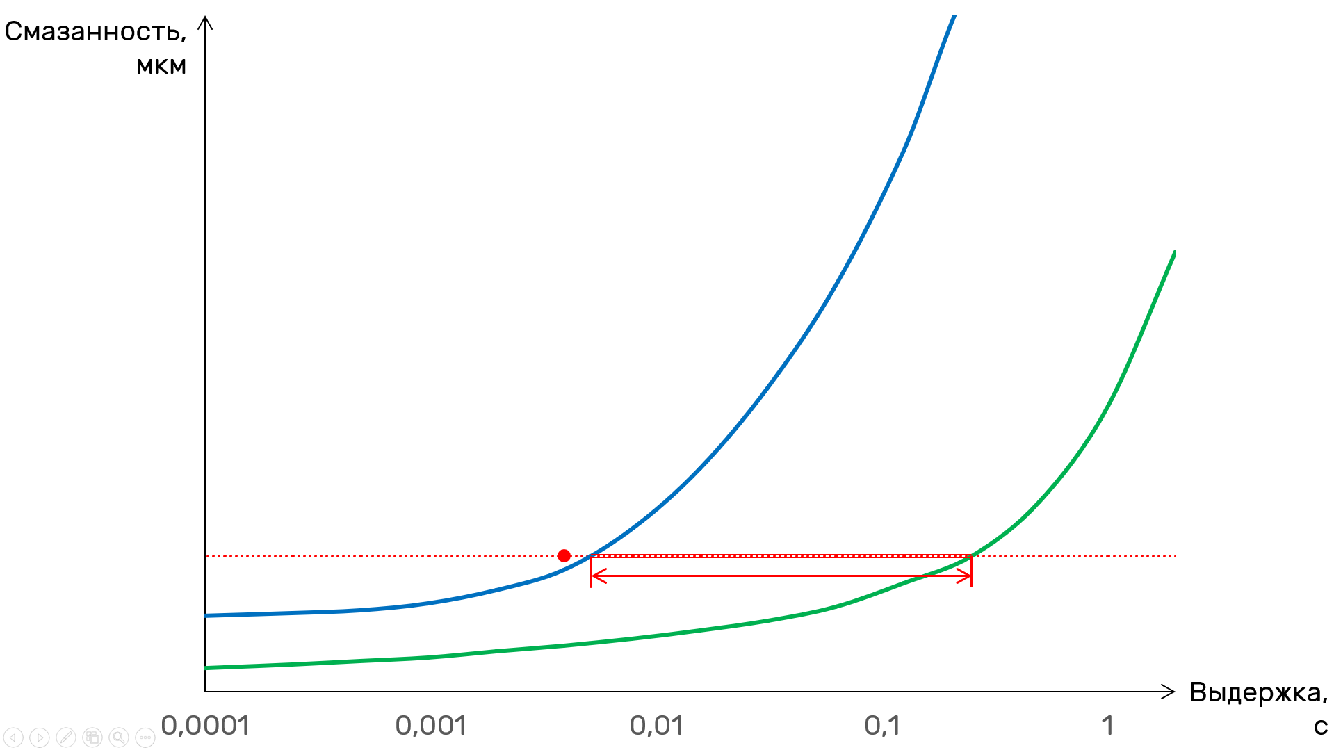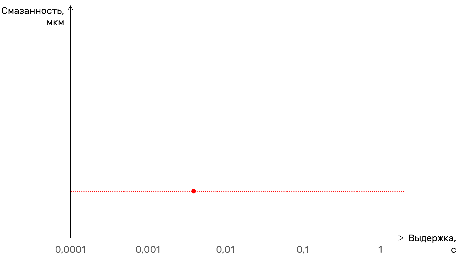 Красная точка — результат замера смазанности без тряски. Линия — базовый уровень, по которому будем считать