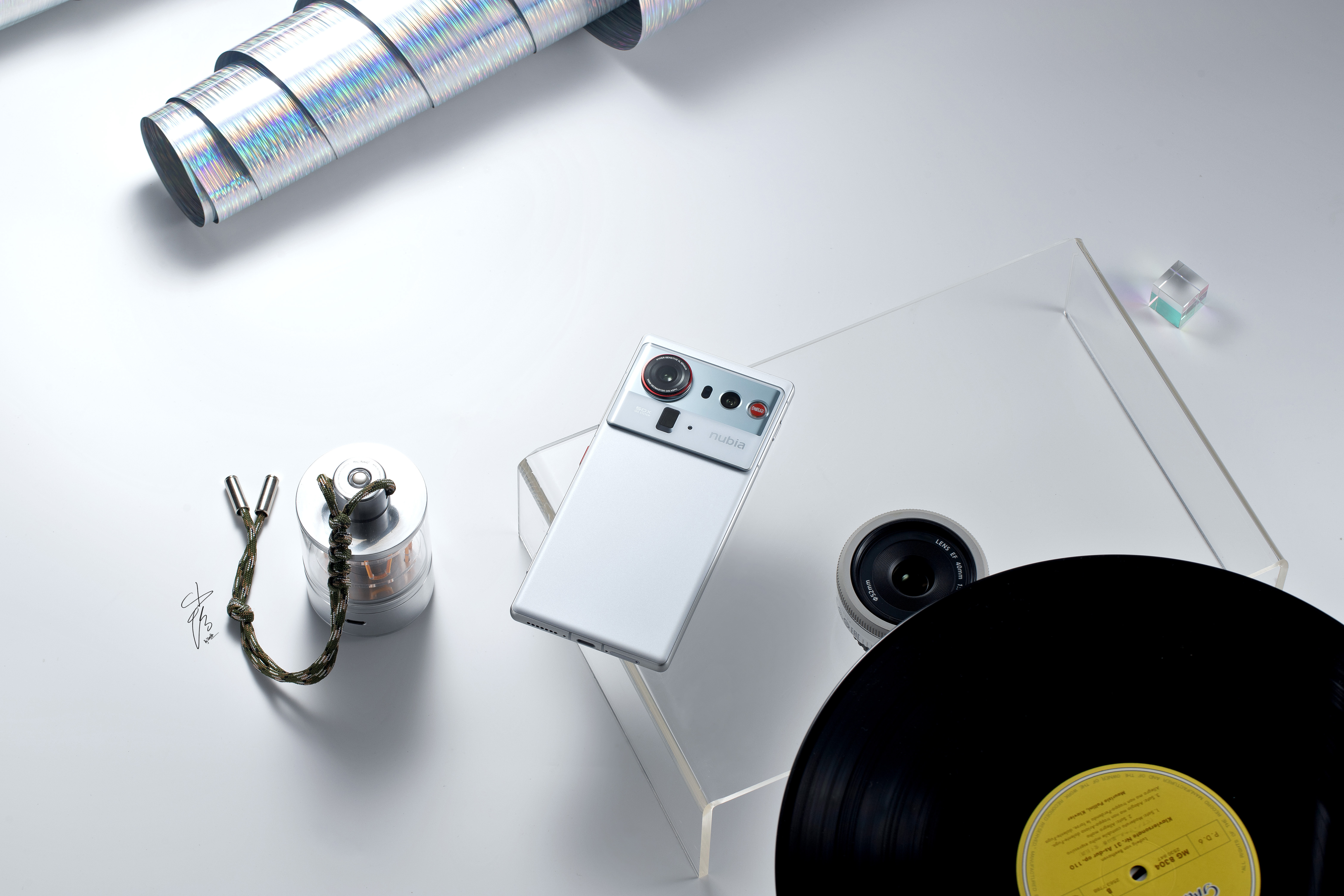 Отдельный фотосет посвящен белой расцветке с перламутровыми отливами и серебристой полоской камеры. Она же фигурирует в видеораспаковке: