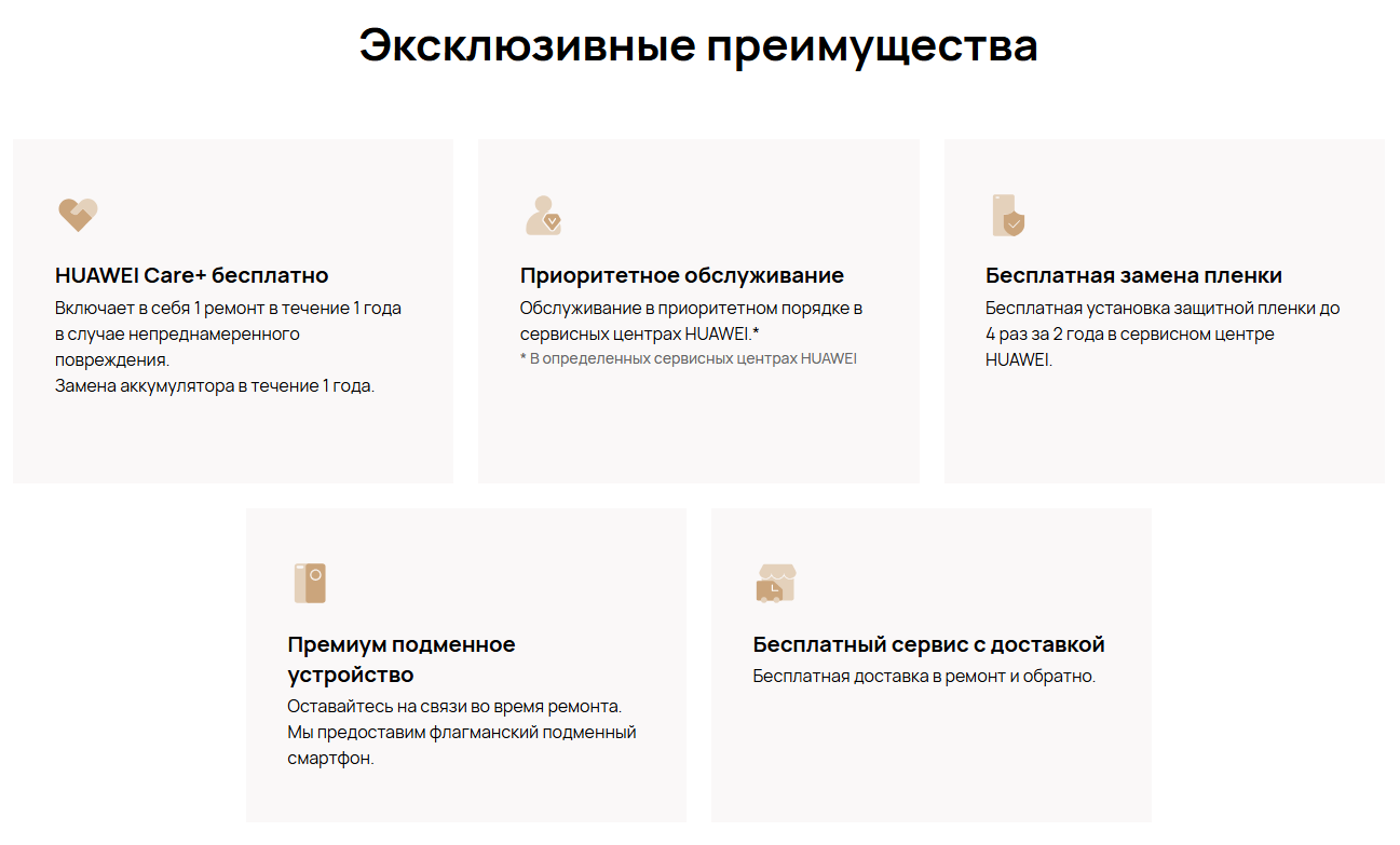 Также общая программа Huawei Care покрывает часы, ноутбуки, планшеты, другие смартфоны и даже наушники. Так при утере одного из беспроводных наушников, вы можете обратиться в сервис и получить новый наушник с существенной скидкой до 50% от заявленной стоимости замены. Часы от Huawei с программой Huawei Care получают дополнительный срок гарантии, а также могут быть отремонтированы два раза по негарантийным случаям по специальной цене. Расчет для каждого устройства и типа повреждения индивидуален, но сервис уверяет, что под “специальной” ценой подразумевается именно сниженная стоимость ремонта, а не какая-то другая выдуманная из ниоткуда цифра.