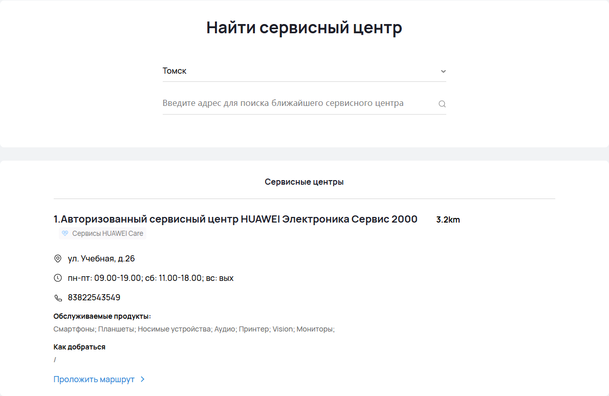 Ну, про диагностику, это мы и так наученные – скажет любой пользователь. А вот что там с другими плюшками? А давайте по порядку пройдемся по ним. В первую очередь нужно понять, а есть ли нам куда обращаться? И да, есть! Для нас, томичей, есть сервис на улице Учебная, д. 26, а в Москве я нашел три таких сервиса. Так что с местом мы определились.