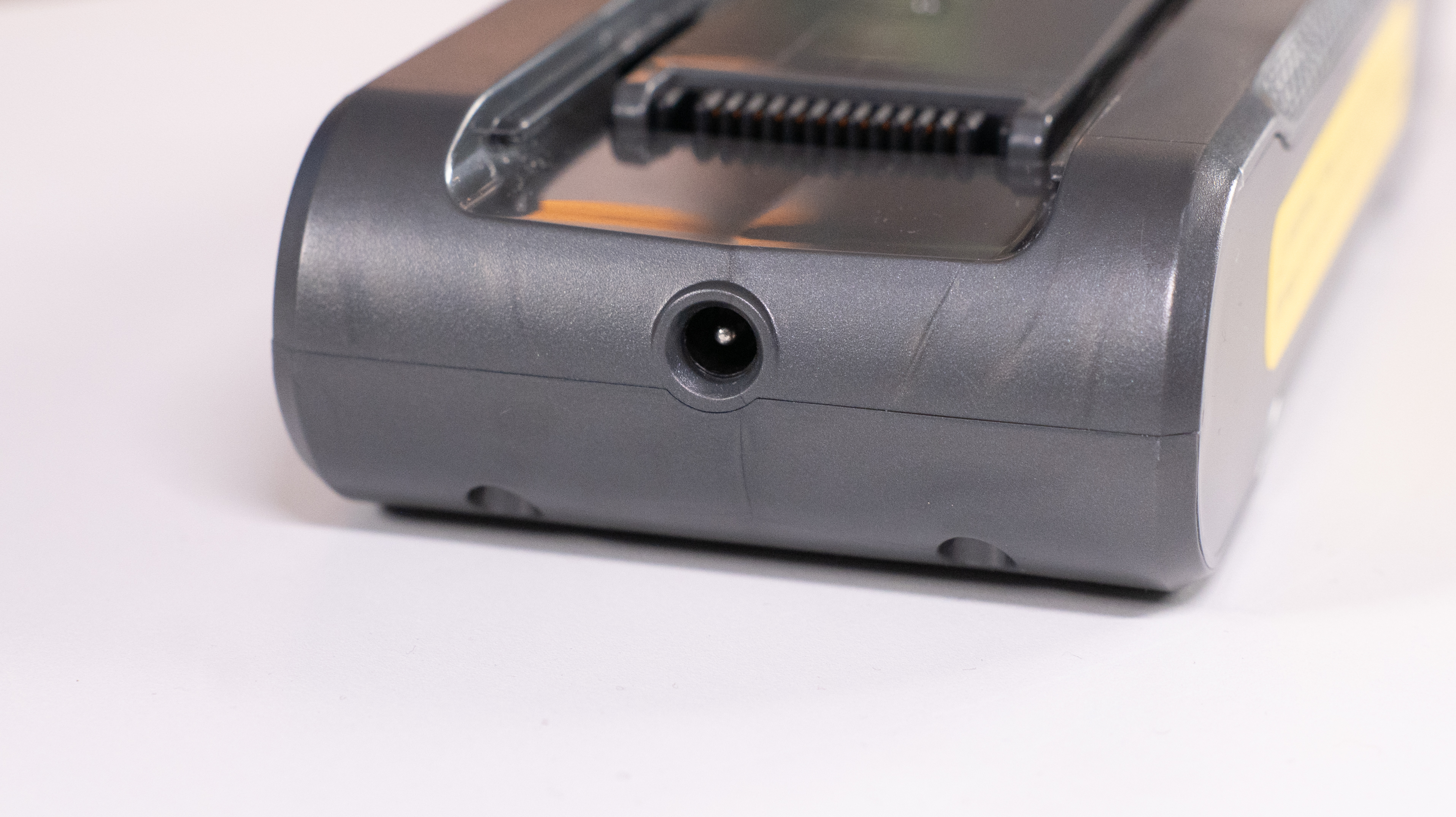 На задней части пылесоса видим сенсорную панель, а вокруг нее – рамка еще одного фильтра HEPA. Она легко щелкает замком, так что в обслуживании проблем не доставит. Ну а панелька показывает заряд батареи и выбранный режим от тихого до турбо. Всего три режима мощности, переключаются они на этой же панельке.