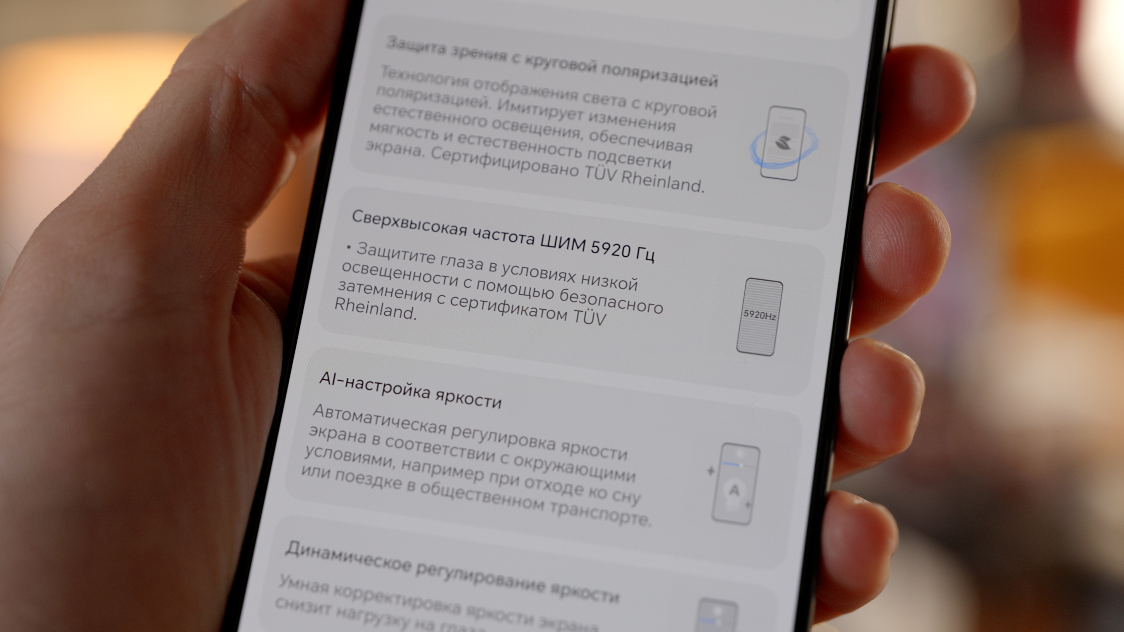 Экран быстрый, безопасный, но яркий ли? Обещают 6000 нит на пике при HDR-контенте, но наш прибор показал 900 нит на ручном максимуме и 1320 нит под ярким источником света. Вроде, немало и достаточно, но будто бы рассчитываешь на что-то большее.