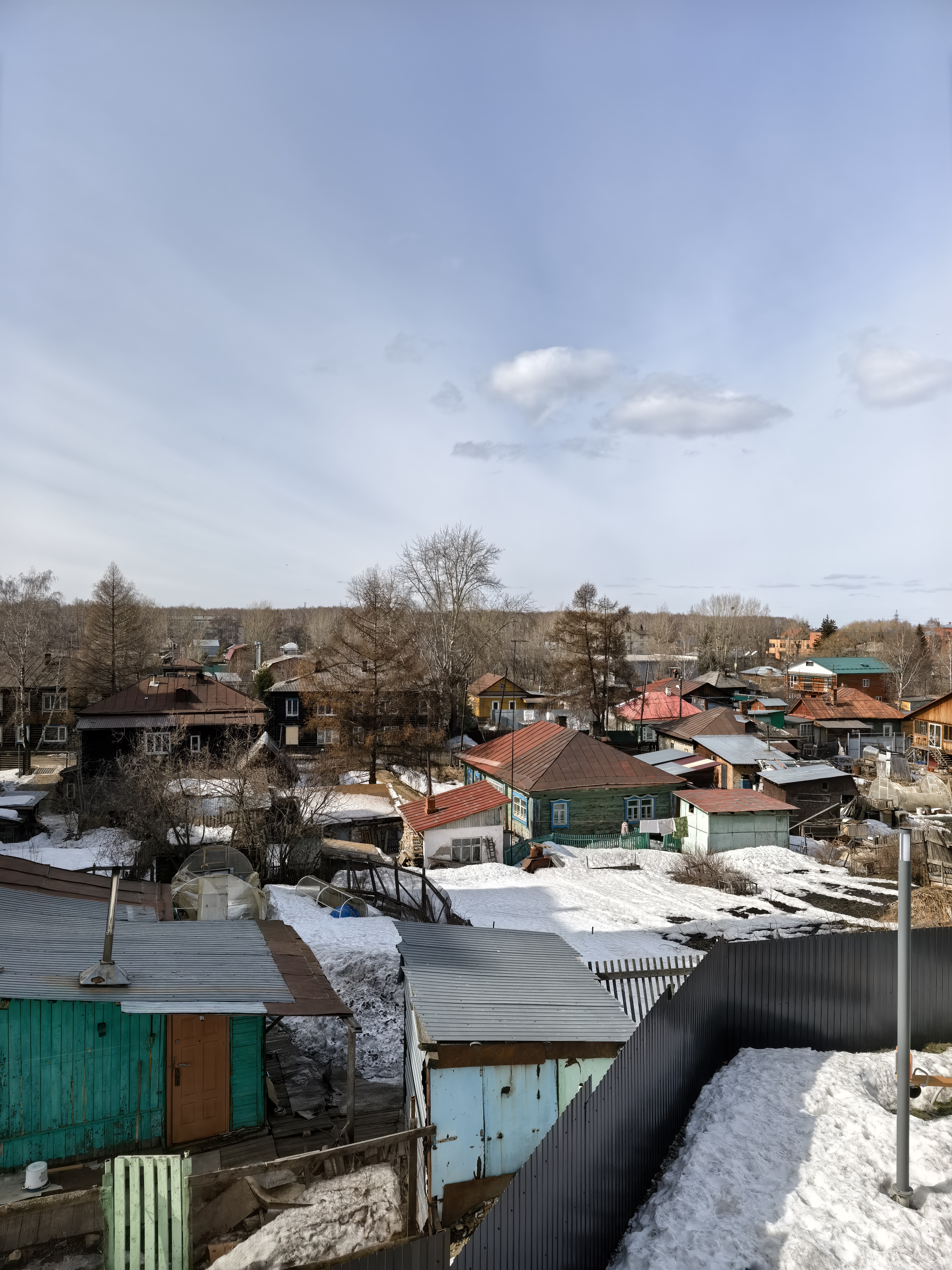 Тем не менее, работа камеры цветокоррекции Red Maple действительно чувствуется: во многих сложных сценах смартфон очень хорошо угадывает цвета. Да, он может навернуть контраста или немного всё приукрасить, но чувствуется, что исходно цвета были определены очень точно. При этом в других сценариях камера может давать маху: то ночной Томск превратится в какой-то урановый рудник с зелёным светом, то два снятых подряд кадра с одной точки окажутся с заметно разными цветами. А ещё он почему-то любит рисовать гало вокруг Солнца.
