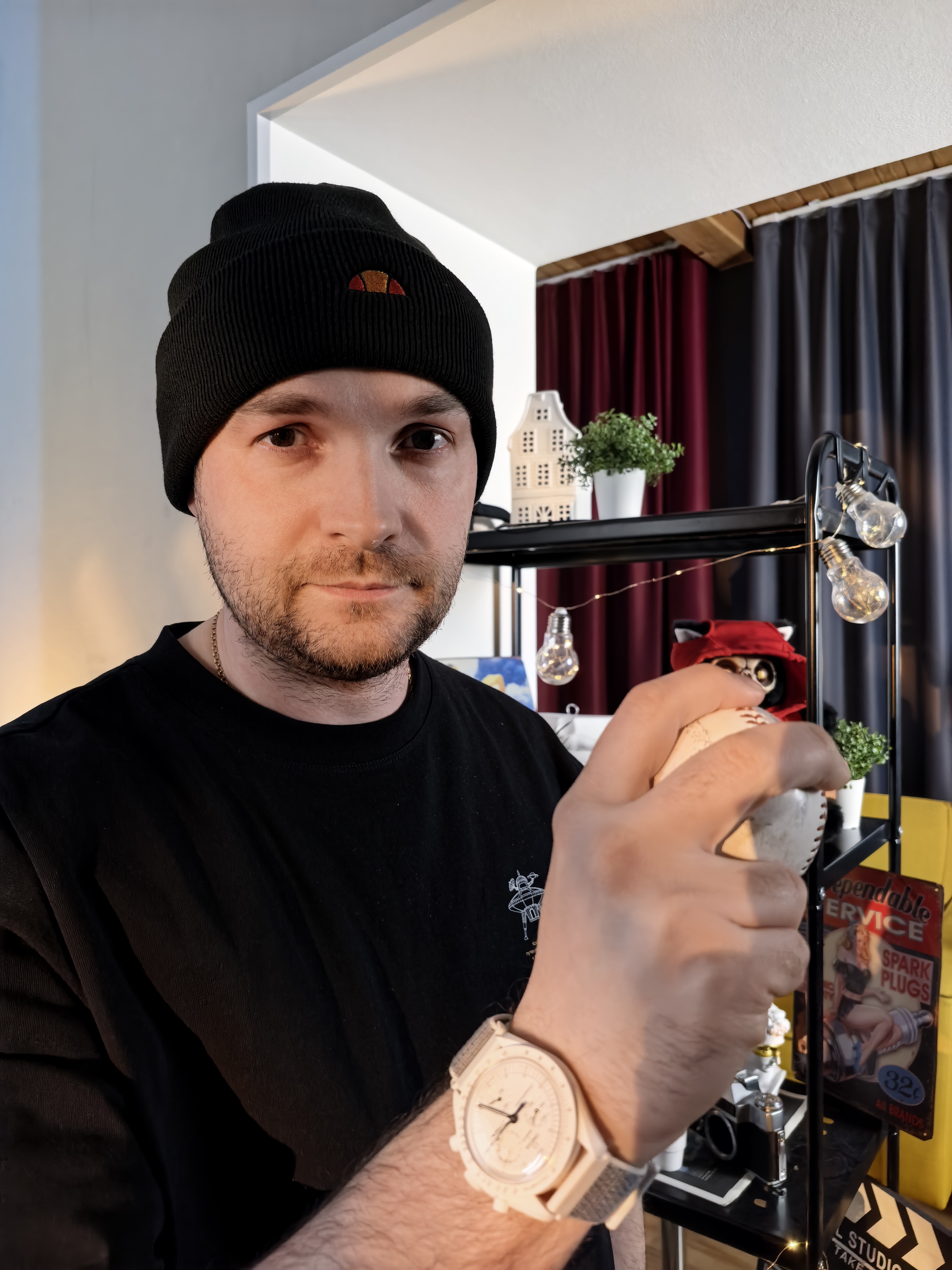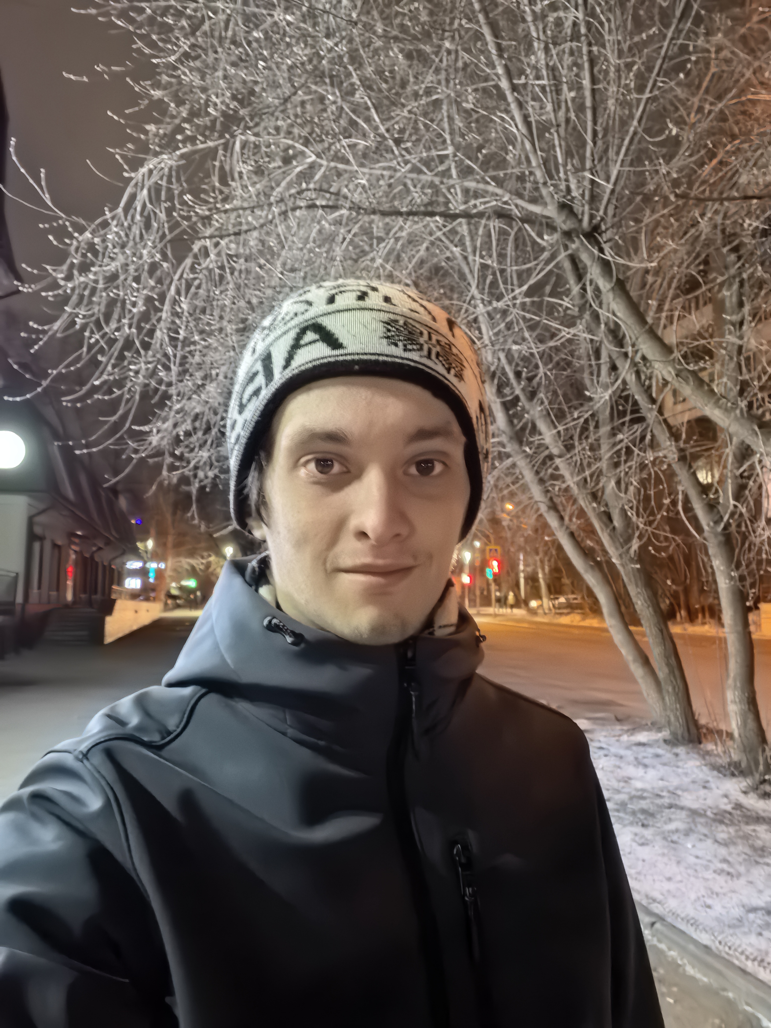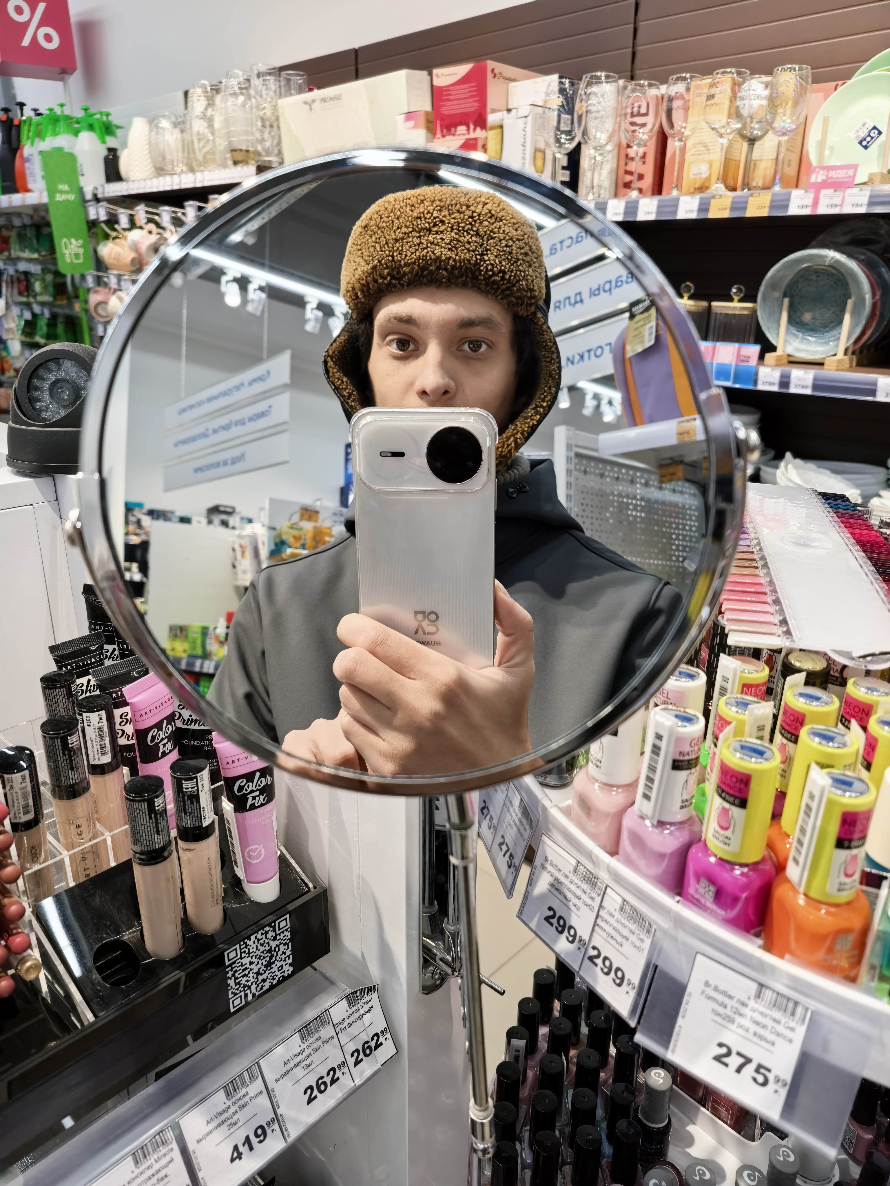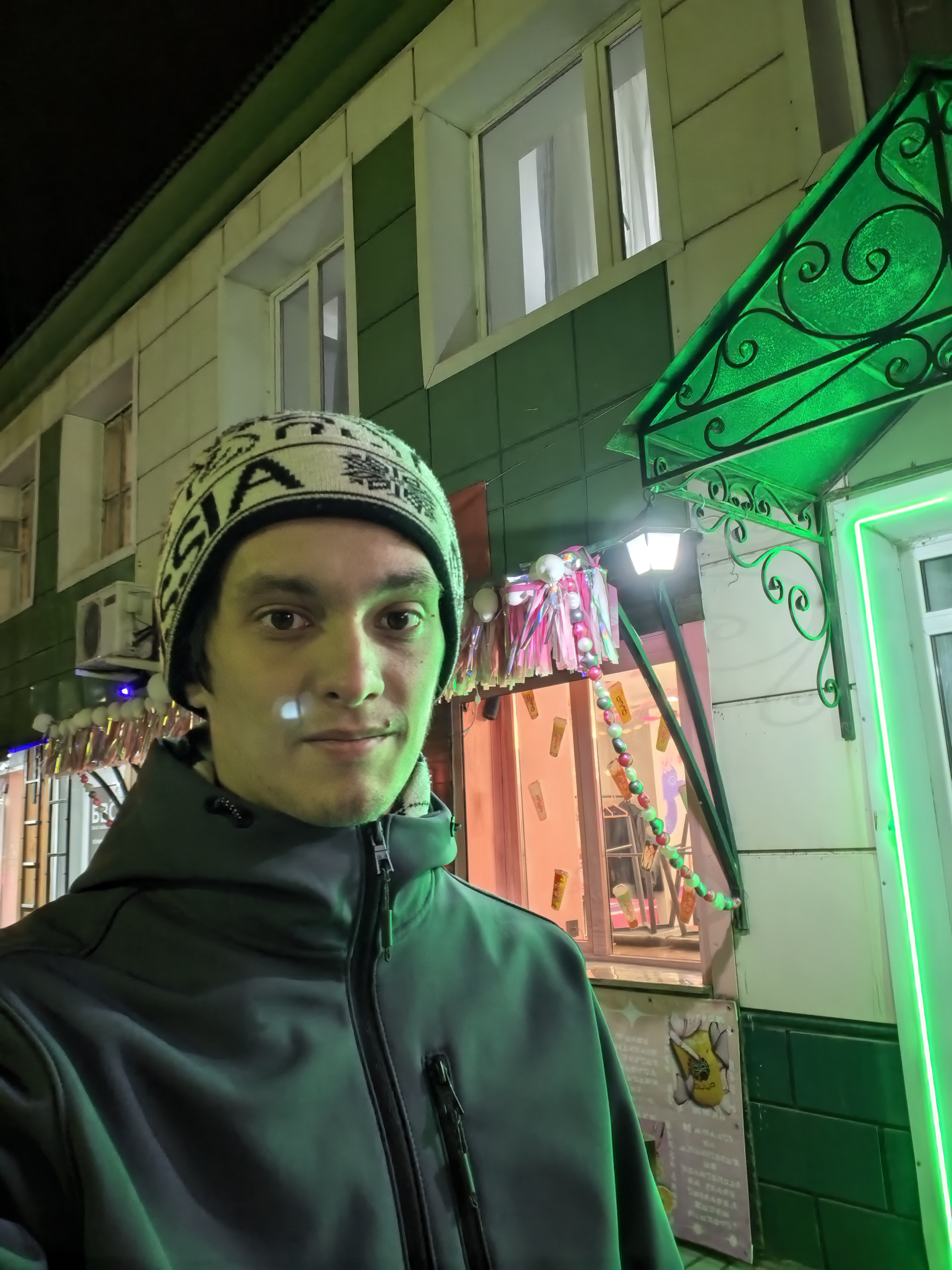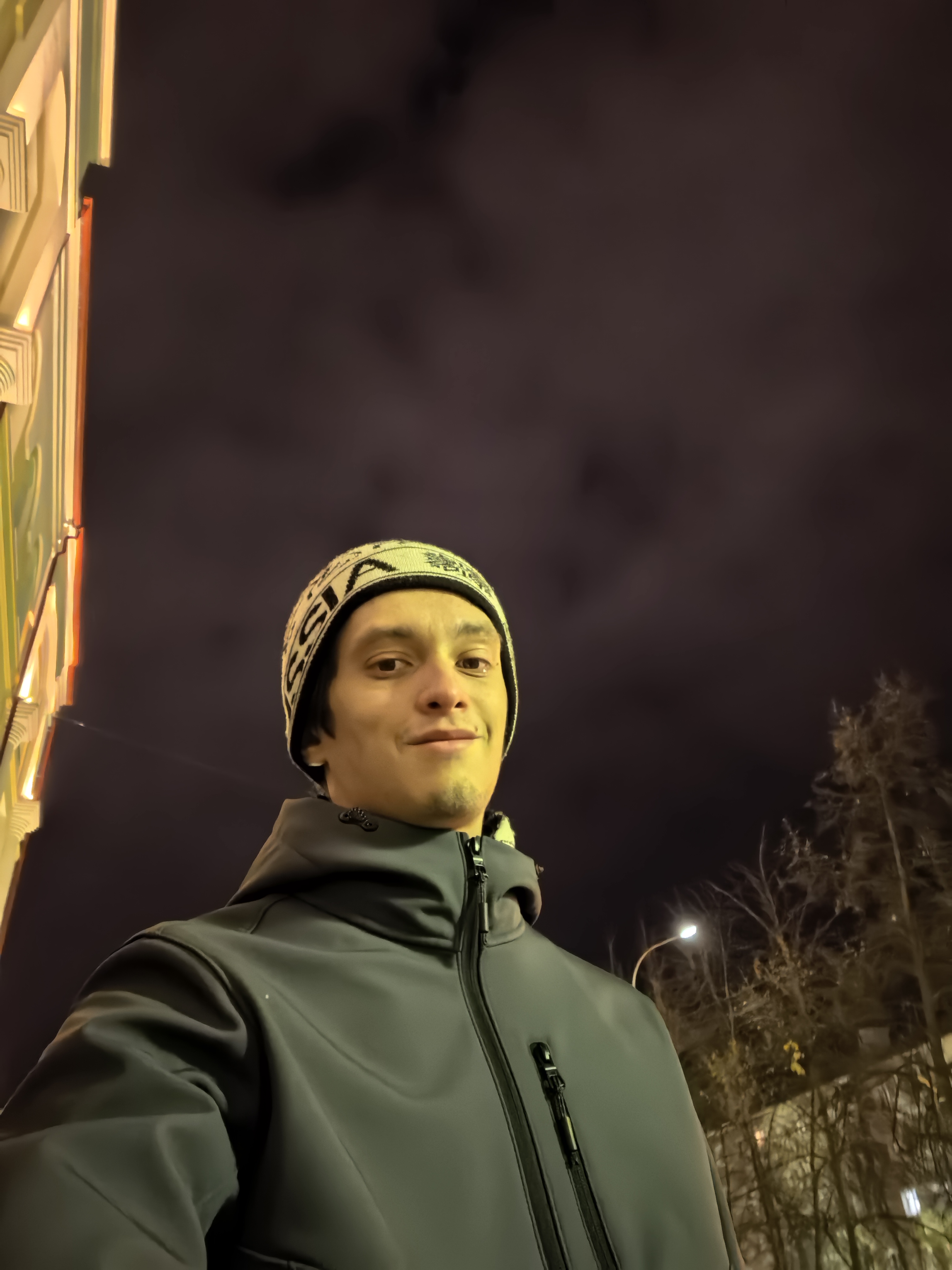 Но вернёмся к портретам. Ещё лучше, чем телевик, их умеет снимать фронтальная камера — 50 Мп с 1/2,55" сенсором. Она тоже работает в паре с Red Maple, и это на самом деле шаг назад: раньше на её месте была уникальная фронталка-телевик. Я всегда к ней иронично относился, типа «зачем снимать себя с зумом?», но теперь, когда её нет, чувствую, что в уникальности смартфон потерял. Зато селфи действительно шикарные получаются. Сделал для вас побольше автопортретов, чтобы вам не пришлось верить мне на слово. (На одном селфи куда-то делся фон, хз, что за баг такой.)