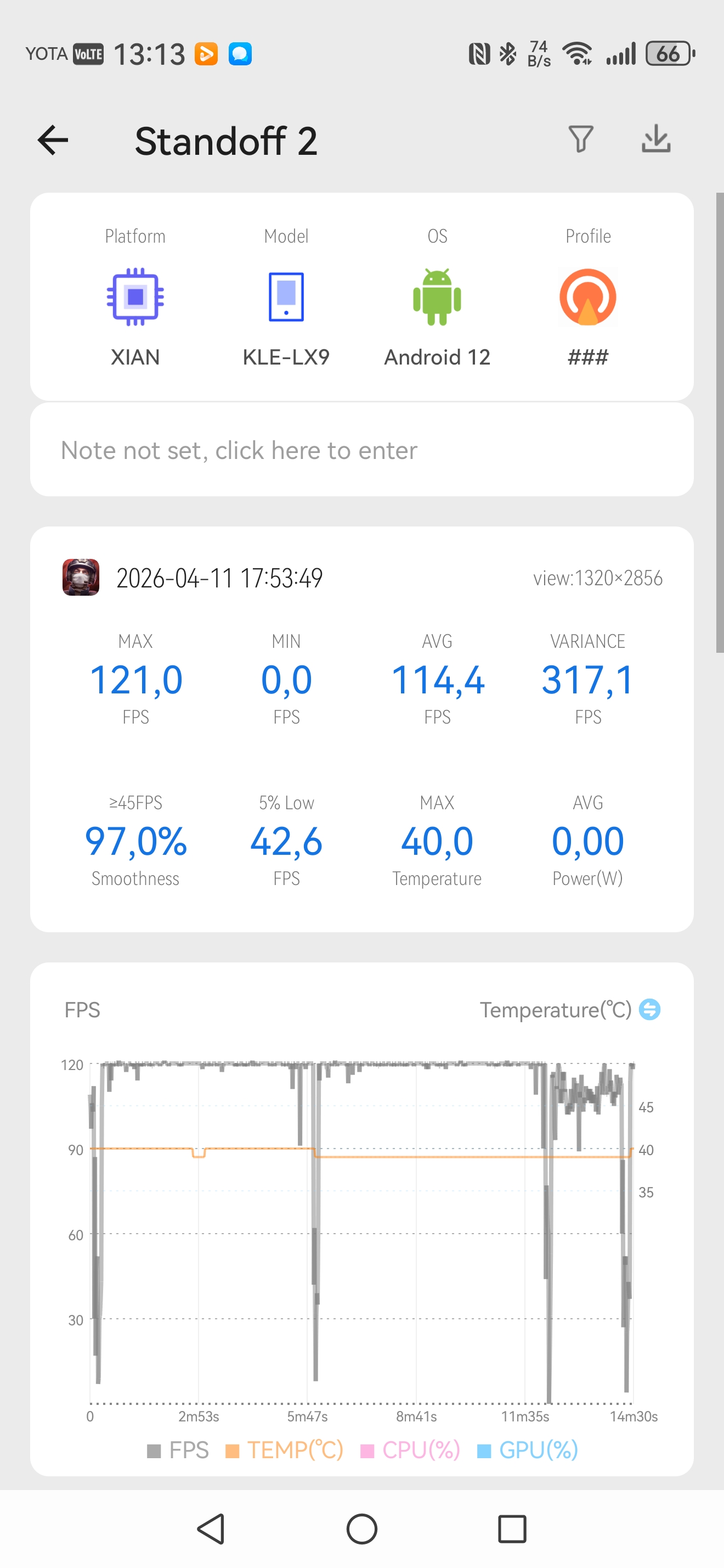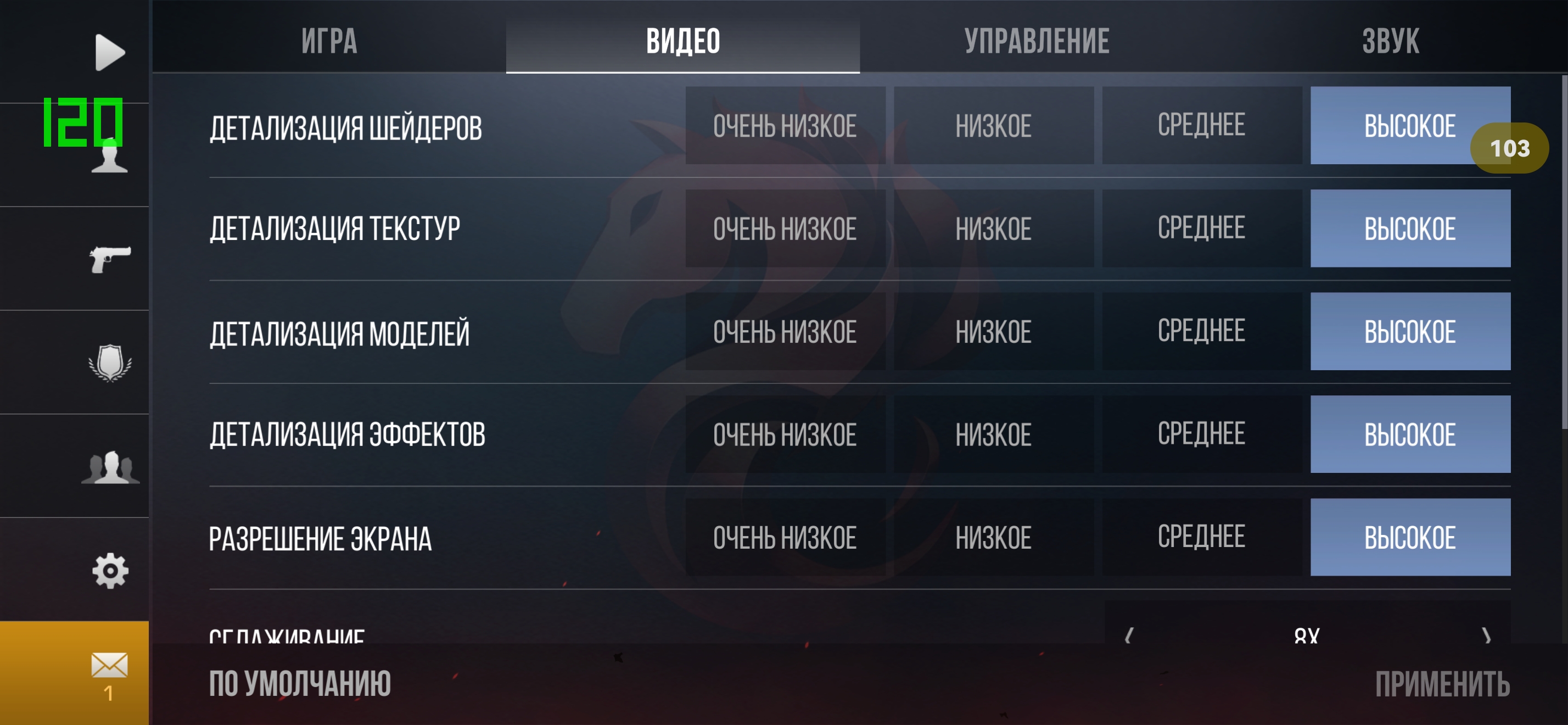 - Standoff 2, снова на максимальной графике, идёт в почти идеальные 120 fps. Просадки — это загрузки битв. Колебание в конце — это долгий поиск очередной катки, а в меню игры fps почему-то до 120 не дотягивает. Но вообще со Standoff 2 смартфон справляется идеально.