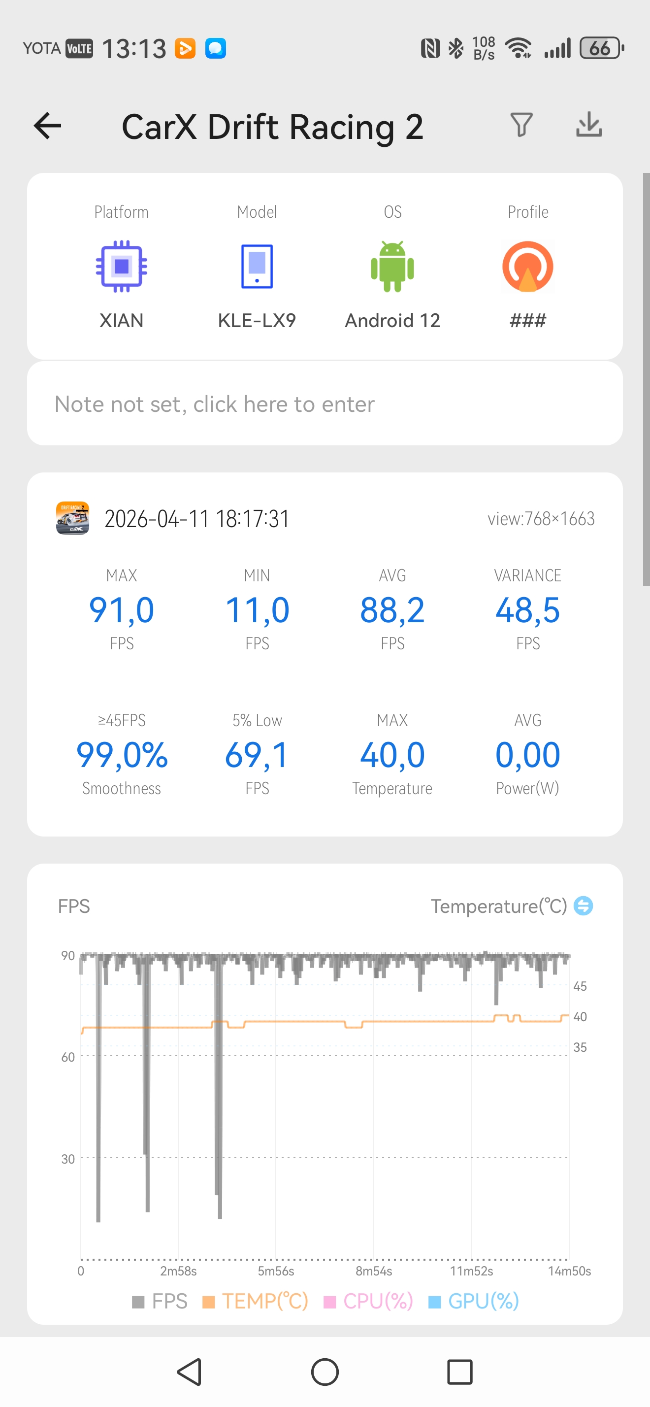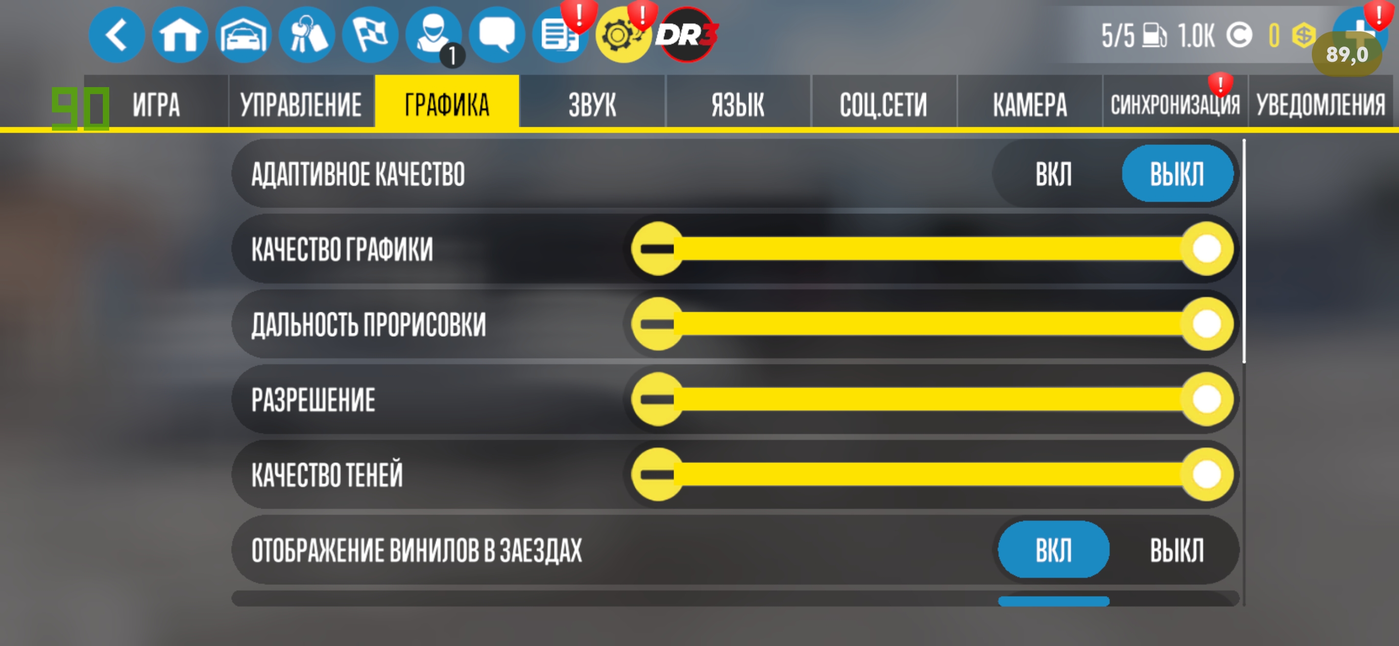 - CarX Drift Racing 2. Около 90 fps с просадками при загрузках. Казалось бы, всё отлично, только вот я играл в 120-Гц режиме, но опять случился лок. Причём один и на всю игру. Конечно, 90 fps — это тоже более чем комфортно, но таких приколов я всё-таки не понимаю.