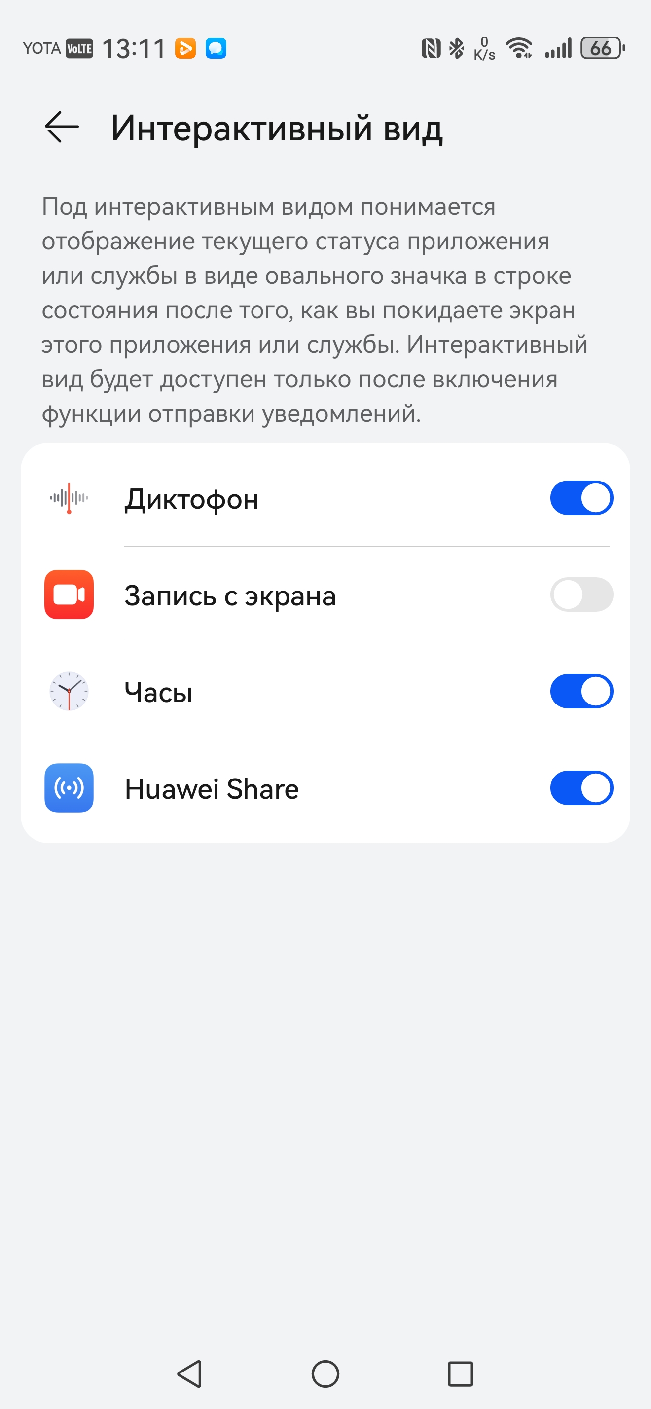 С обновлениями EMUI также перестала выглядеть «заброшенной». Сейчас это очень плавная, стильная оболочка. Но не всё в ней радужно. Я уже упоминал малое количество виброэффектов и отличие детальной настройки герцовки; ещё можно пожаловаться на невозможность опустить шторку свайпом вниз по экрану, невозможность перейти в настройки приложения через долгий тап по нему (почему-то только кнопка «Удалить» есть) и поддержку всего 4 приложений в «Интерактивном виде» — так называется местный Dynamic Island. Локализация тут тоже не идеальная, да.