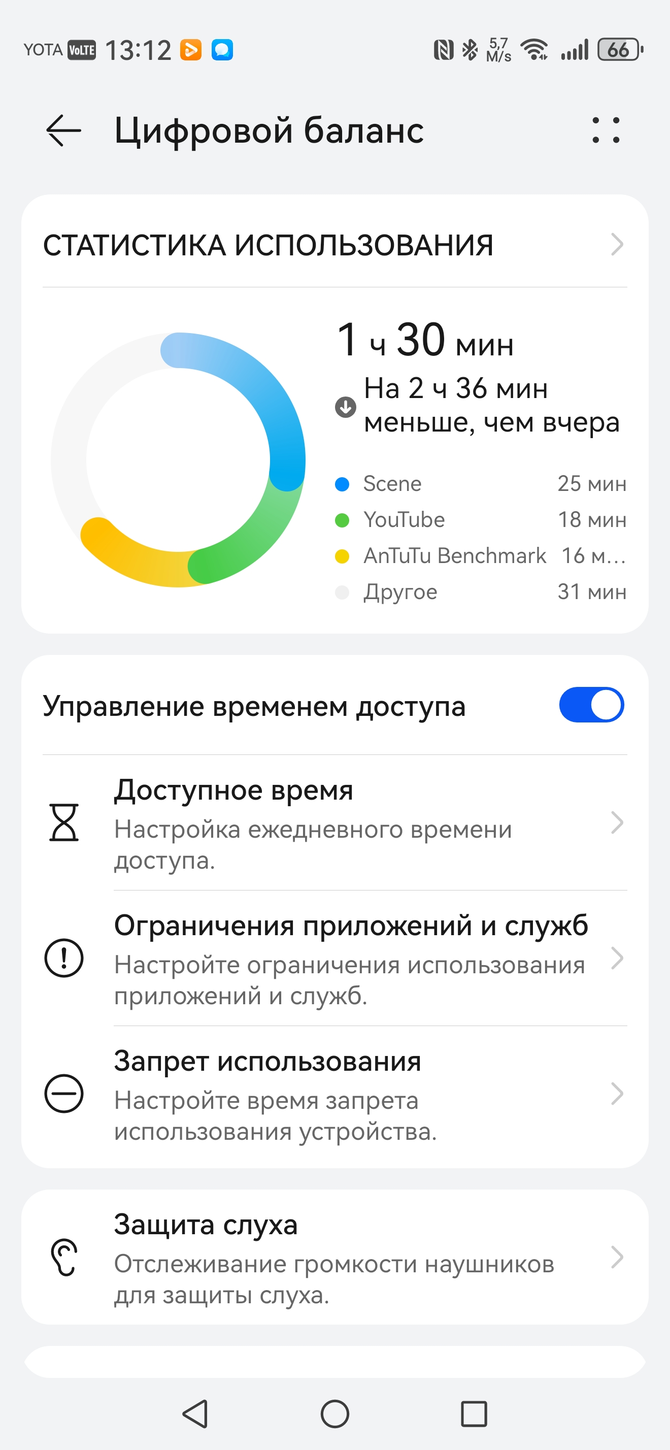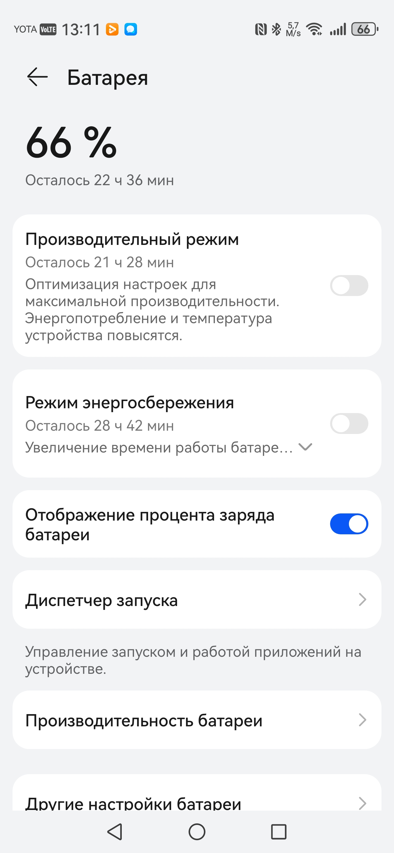 К сожалению, раздел настроек батареи в EMUI абсолютно неинформативный, но я сейчас ручками посчитал, и получилось, что батарейка разрядилась где-то на треть за 3 часа 42 минуты экрана, среди которых чуть больше часа игр, примерно столько же камеры, а остальное — залипание в меню и телеграм. Больше десяти часов экрана на полном заряде в таком смешанном режиме — это круто.