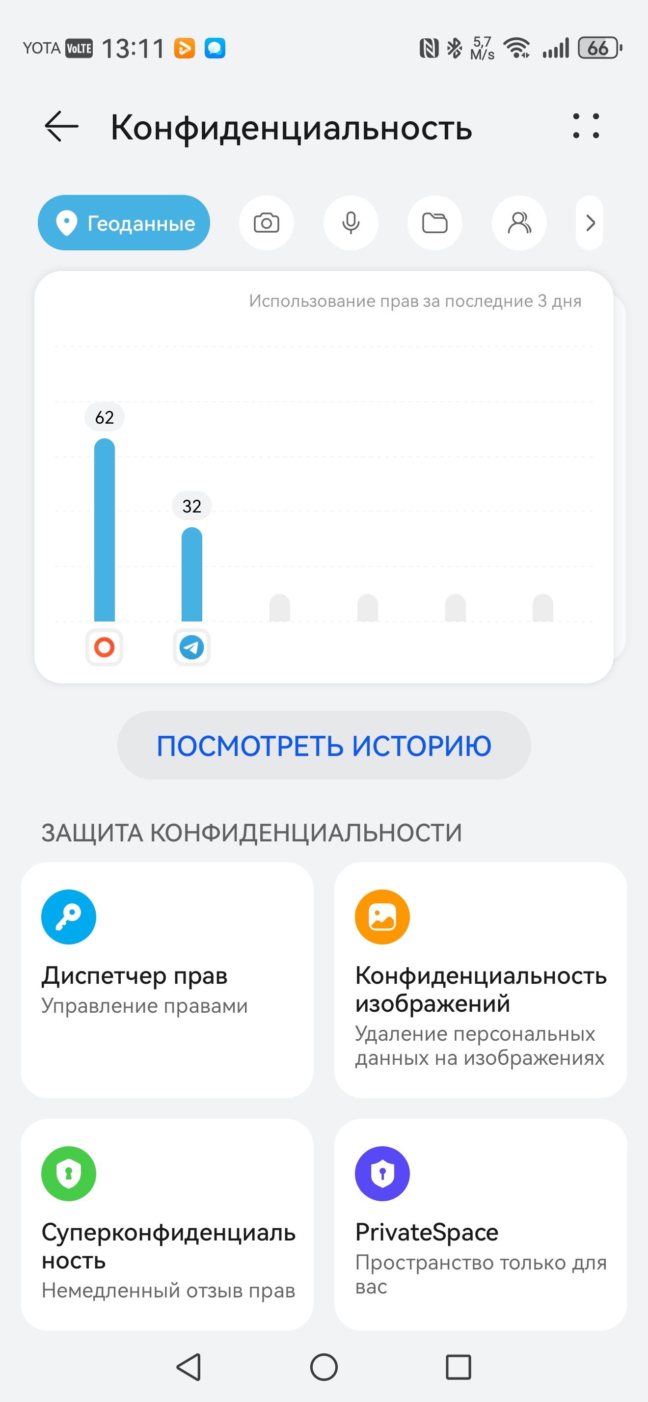 Зато тут есть жестовое управление (делать скриншоты «щипком» в воздухе мне даже понравилось), интерактивные темы для экрана блокировки (типа игры в баскетбол, опять же, на жестовом управлении) и ставший уже стандартным ИИ-редактор фото: удаление объектов, улучшение выражения лиц на фото, улучшение яркости кадра. А ещё есть классный «Центр конфиденциальности», где можно посмотреть, какое приложение сколько раз каким разрешением пользовалось и какие угрозы вашей безопасности видит прошивка.
