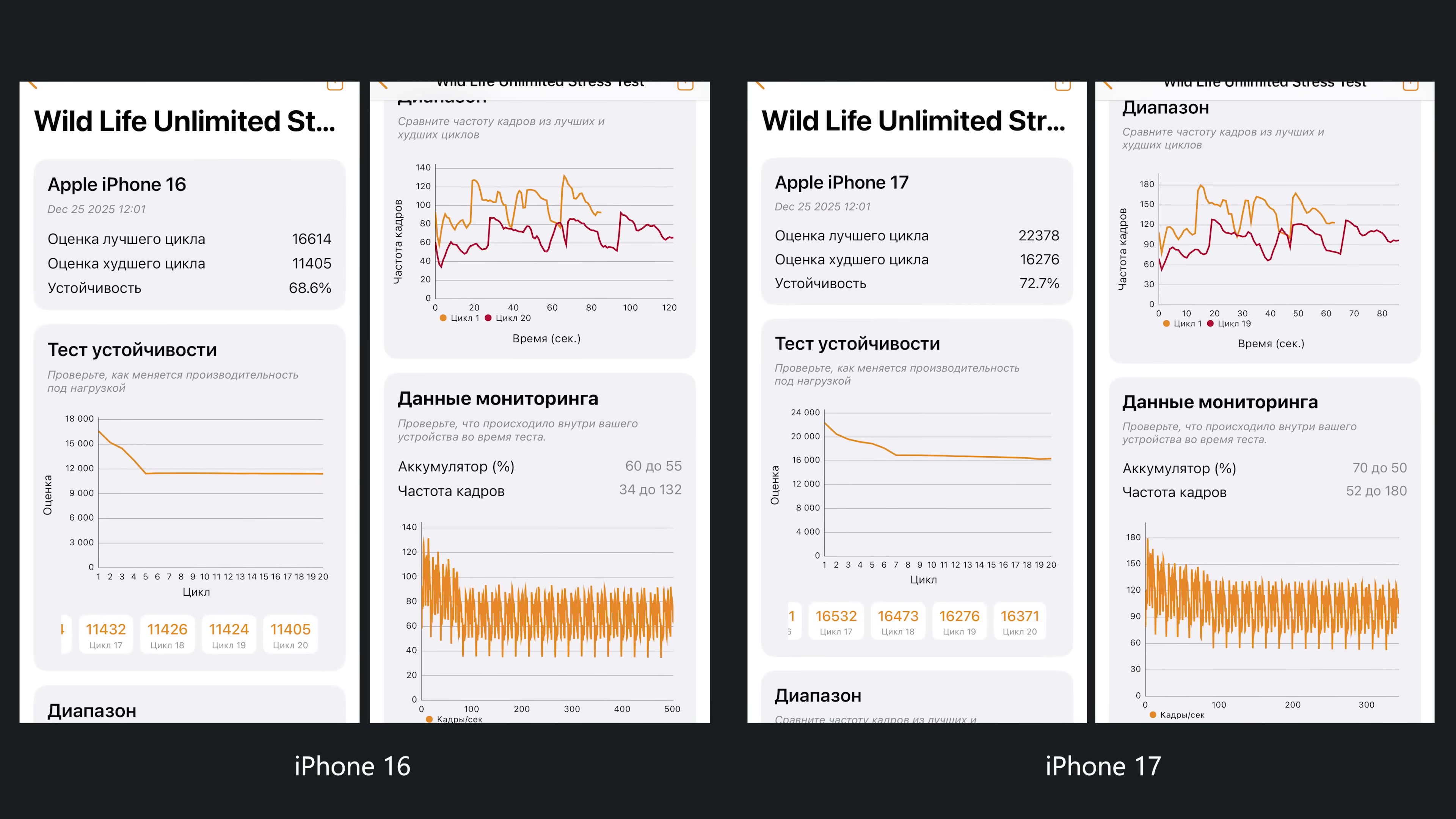 Короче, прогресс налицо и по тестам iPhone 17 смотрится бодрее прошлого поколения. Но что в играх?