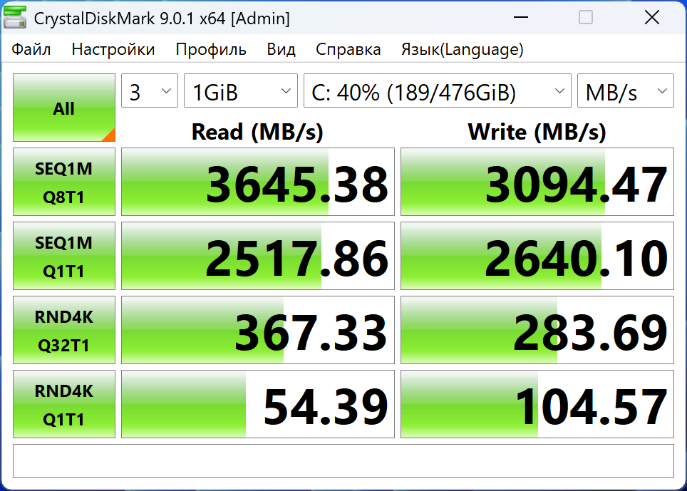 И напоследок – тест на чтение/запись. Результаты очень хорошие, и способны перегнать результаты многих бюджетных ноутбуков! Вроде бы, компоненты живут в тесноте, но точно не в обиде.
