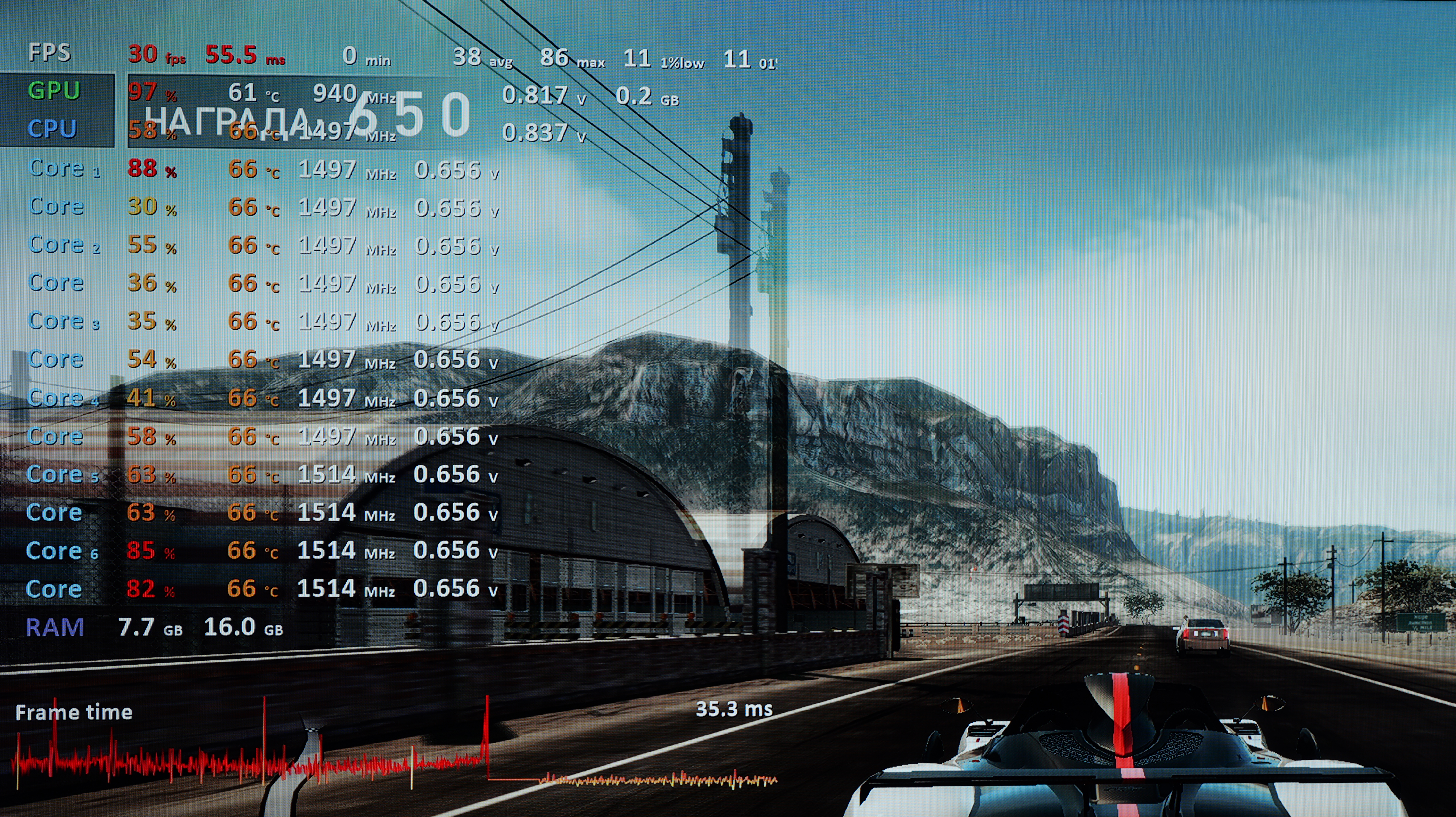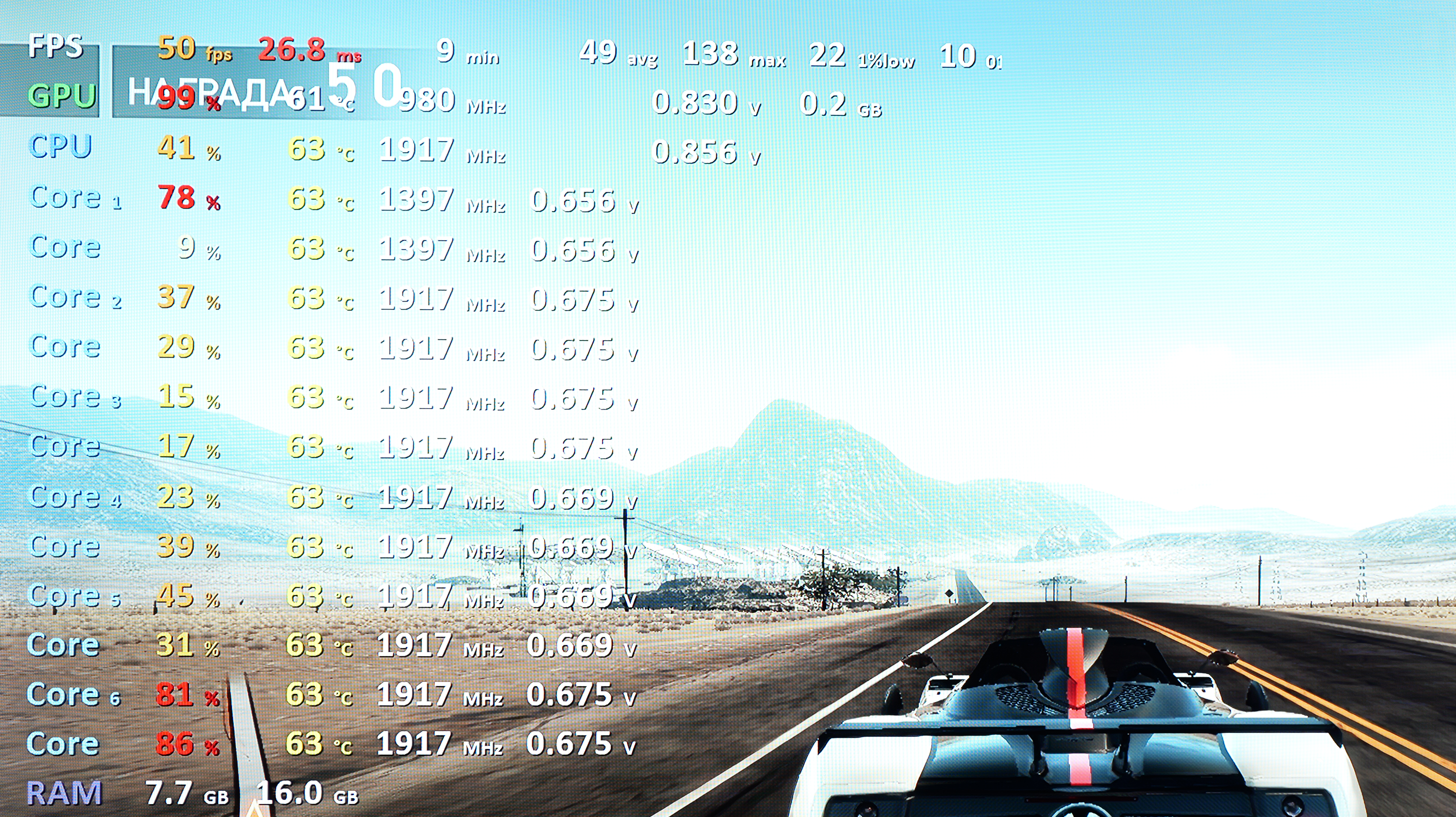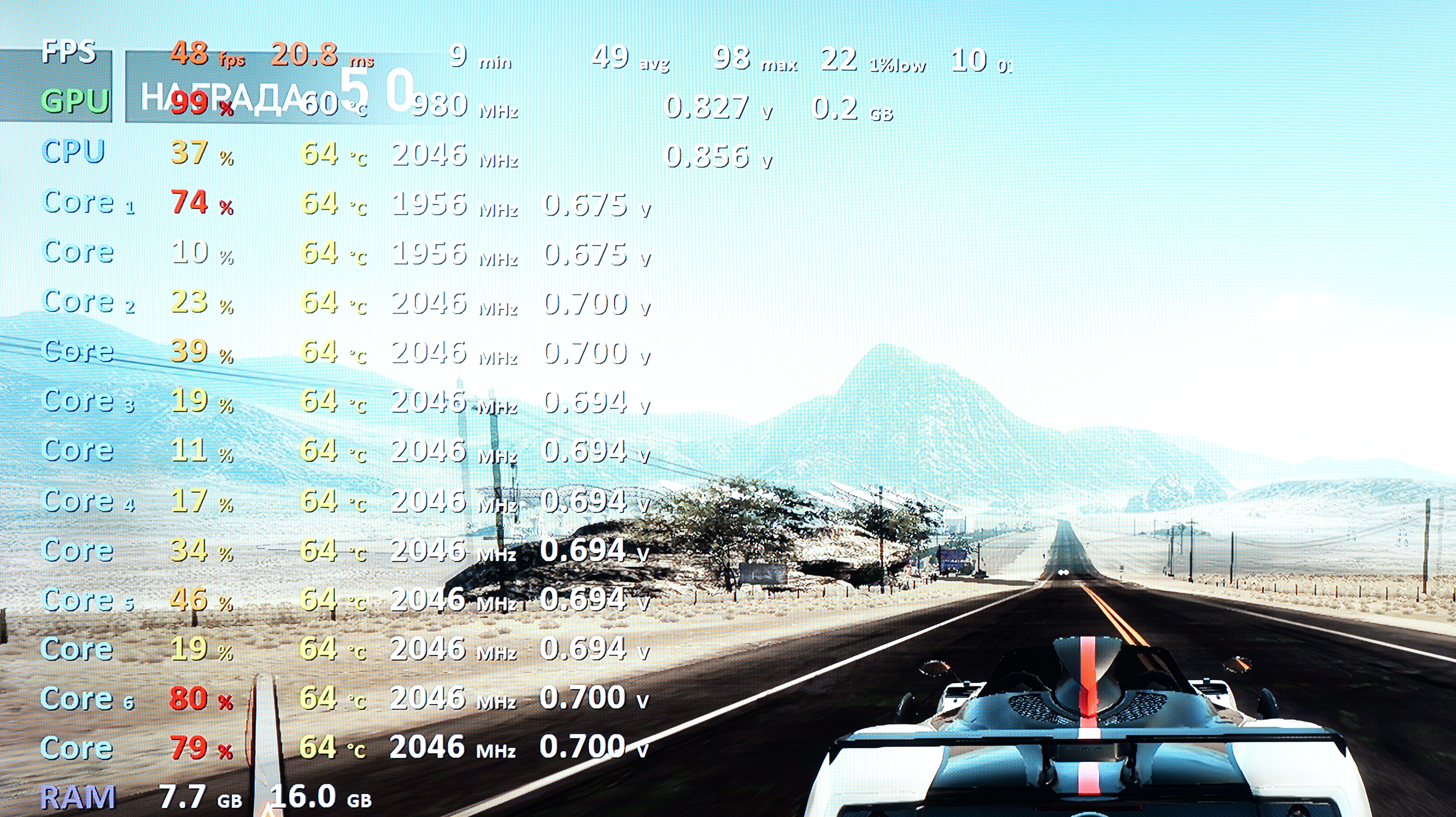 Ну и в качестве “классики” закинул в тесты Fallout: New Vegas 2009 года выпуска и Need for Speed: Hot Pursuit 2010 года. Древние игры, да. Но в этом то и кайф проходить их с чувством ностальгии на мини-ПК! Обе игры идут в 60 fps на FullHD, испытывают проблемы на 2K (30-40 fps) и совсем не любят 4K, где показывают в лучшем случае 20fps.