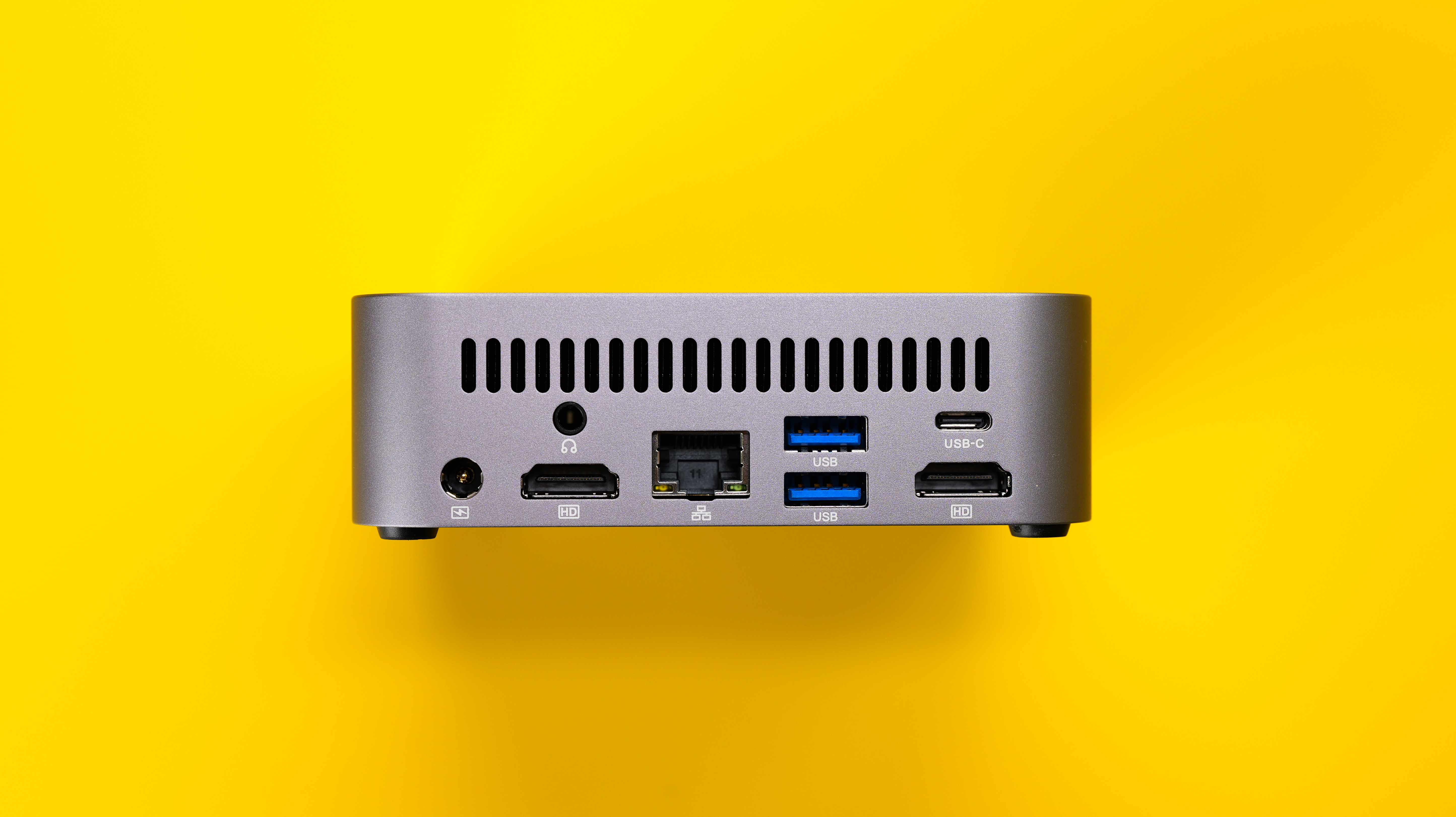 Габариты малютки впечатляют: 116 x 107 x 35.6 мм. Рядом с телефоном выглядит, как просто пузатый повербанк. На передней панели видим кнопку включения и два USB-A 3.2., а вот сзади такая дискотека портов, что каждый второй ноутбук будет завидовать: два HDMI 2.0 (4K@60fps), 3.5-мм аудиоразъем, сетевой LAN RJ-45, один USB-C 3.0 и два USB-A 2.0. Несмотря на синюю сердцевинку это действительно USB 2.0. Как по мне, это довольно древняя технология. Еще из нюансов: порт USB-C поддерживает разрешение только до 4K@30fps. Тоже не супер современно, но это вам не подстольная башня! А еще внутри ноутбучный процессор, 16 ГБ ОЗУ и 512 постоянной памяти. Потом я его разберу и сюрпризы продолжатся, но обо всем по порядку.