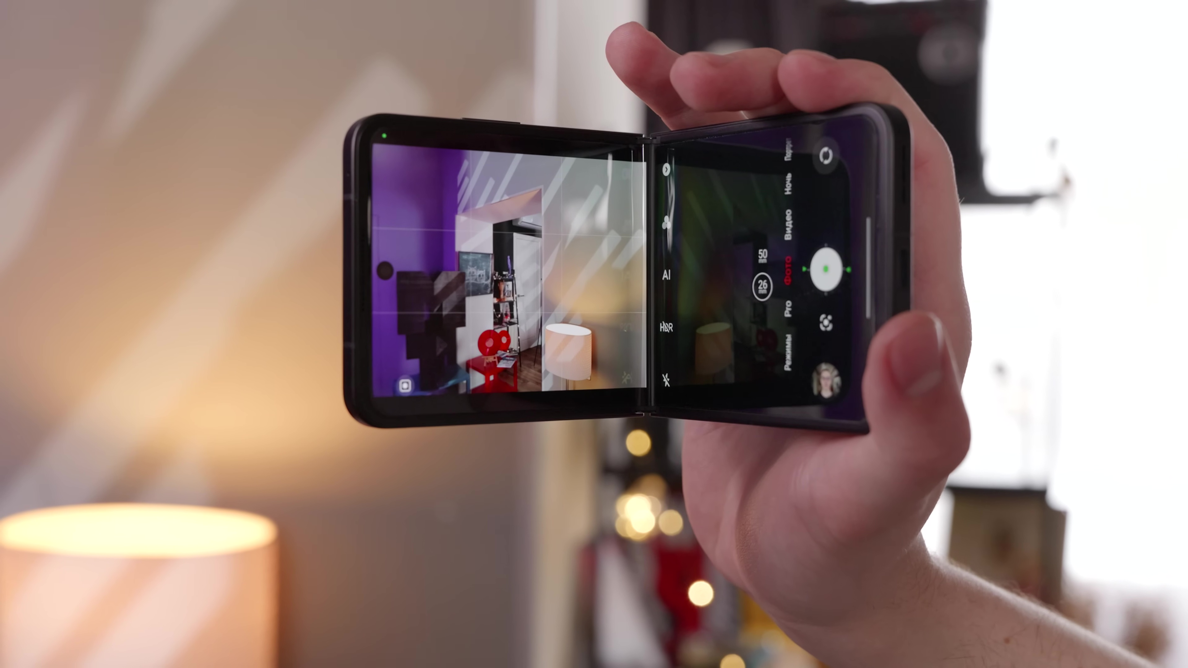 На внешнем кольце камер две – основа на 50 Мп и целый датчик глубины аж на 2 Мп. Внутренняя селфи-камера на 16 Мп и она без автофокуса. Её вы можете использовать для видеозвонков и записи кружков в телеграме. Для селфи тоже подходит, хотя есть возможность юзать наружную камеру, в которой есть автофокус. Просто запускайте предпросмотр в интерфейсе камеры и цельтесь через внешний дисплей.