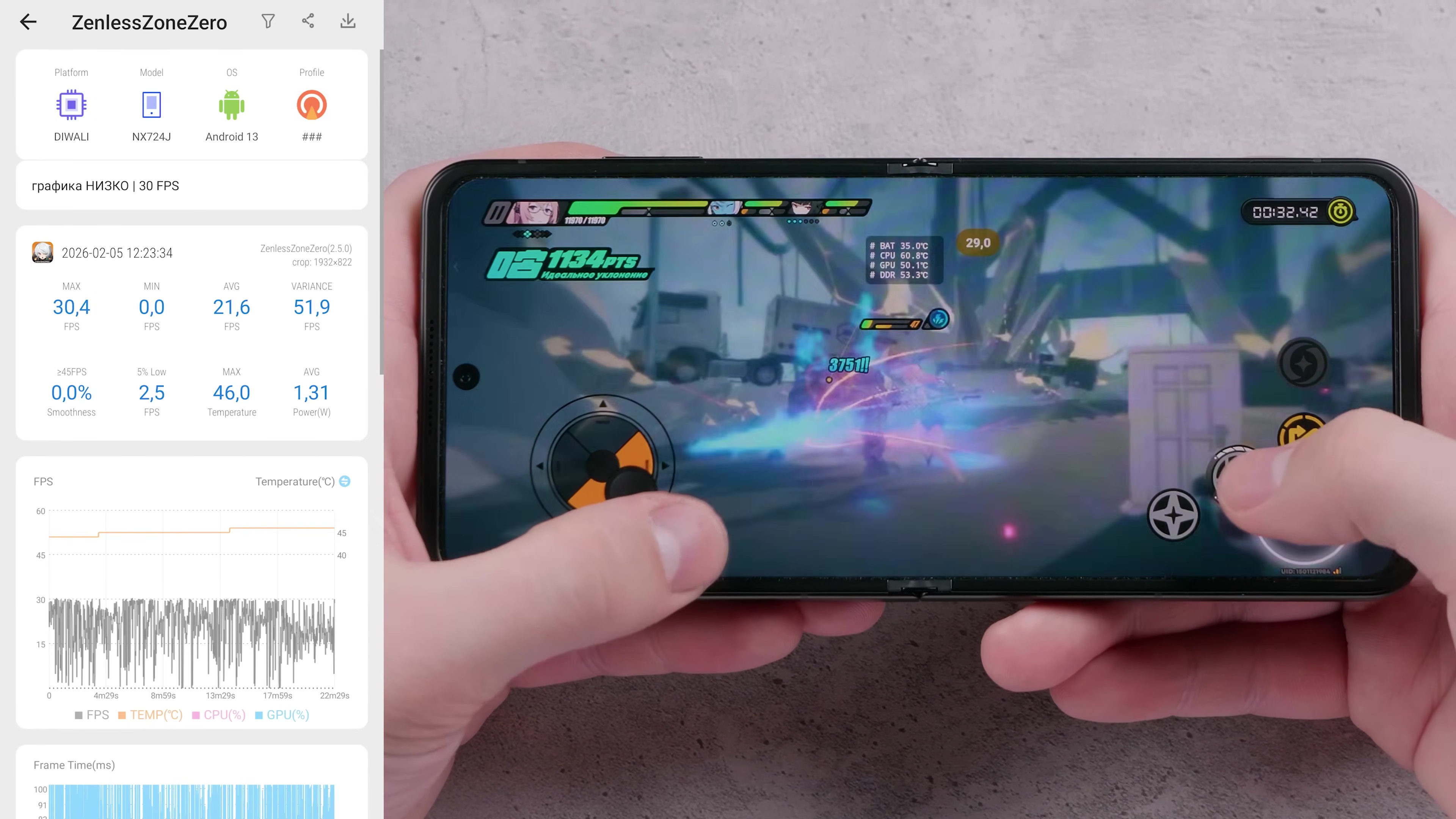 Гачи-мучи тяжеляк Zenless Zone Zero с низкой графикой идет в среднем в 21 fps с просадками. Превозмогать можно, но зачем? Тем более, что никакая раскладушка не скажет вам спасибо за нагрев в долгосрочной перспективе.