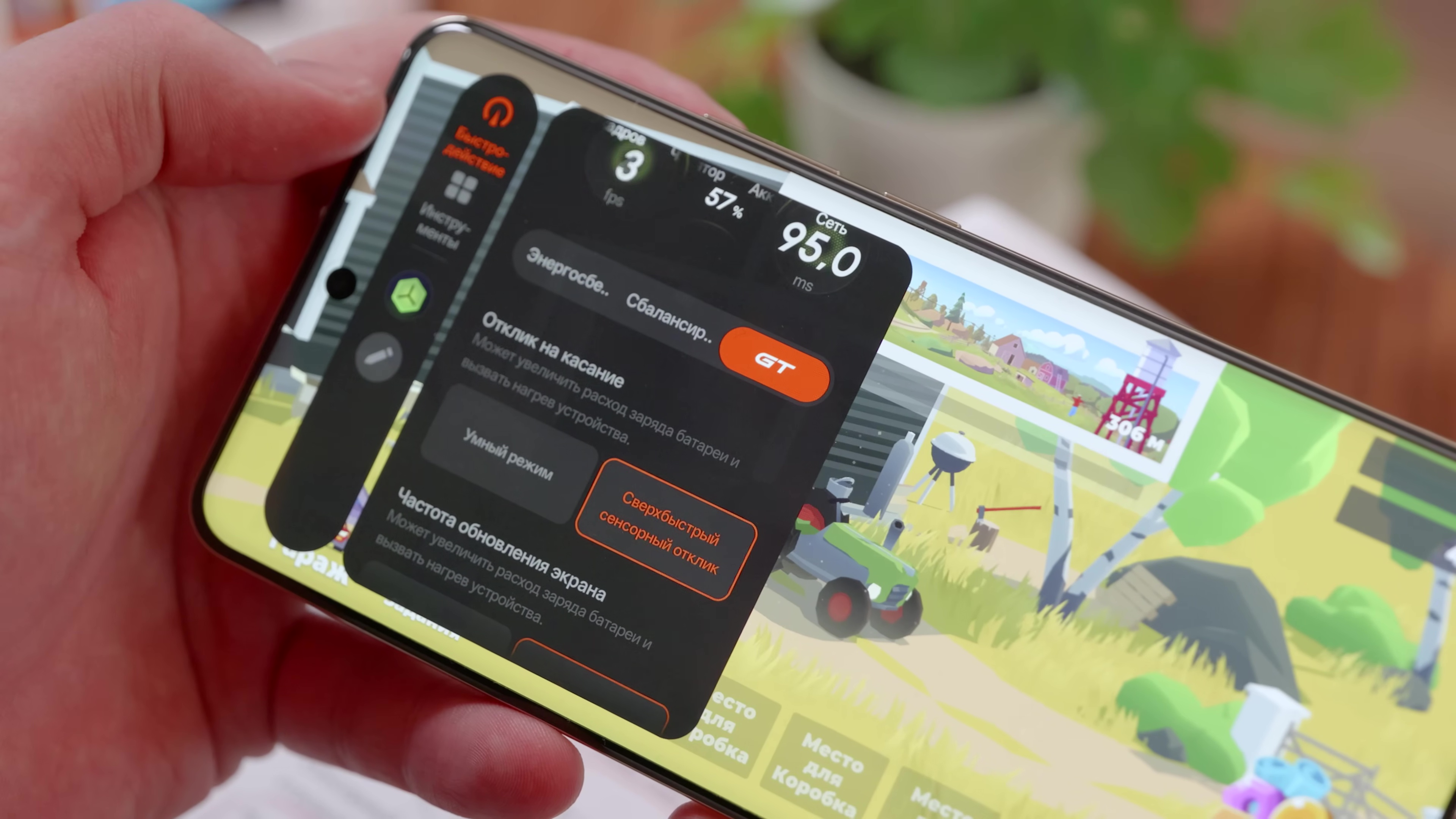Сенсорный отклик в интерфейсе – 120 Гц, в играх до 260 Гц. Мгновенный тач обещают 2500 Гц. Не забывайте в игровой шторке прожимать ускорение тача и включать GT-режим. По факту сенсор тут неплохой.