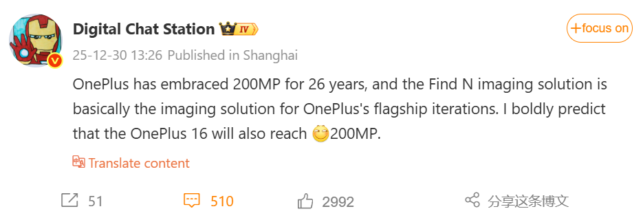 Ранее инсайдер Digital Chat Station также сообщал, что в OnePlus 16 возможно внедрение камеры на 200 Мп, причем будущие решения для серии раскладушек OPPO Find N станут таковыми и для флагманской серии OnePlus. Однако, пока инсайдер не уточнил, какая именно камера получит такое разрешение – основа или телеобъектив.