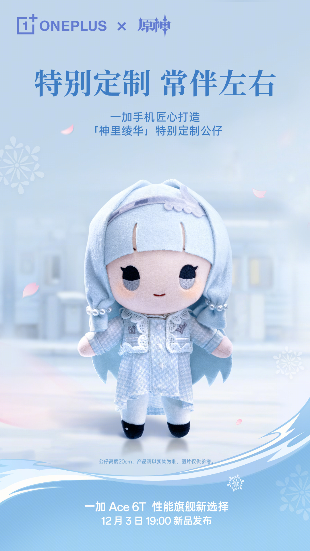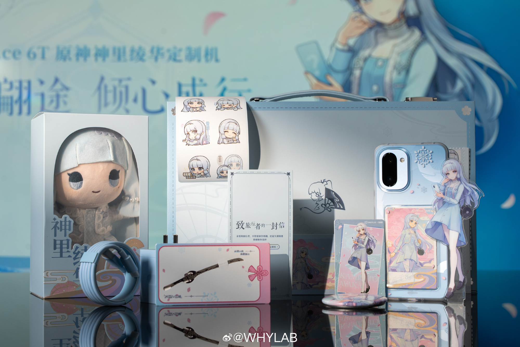 Лимитка посвящена персонажу по имени Камисато Аяка, стихией которой является лёд. Ввиду этого смартфон получил голубую крышку, на поверхности которой выгравированы тематические рисунки. Подача у модели эффектная: девайс запакован в стилизованную под чемодан коробку с ручкой и защёлками, внутри которой владельца ждёт сам смартфон и крайне богатый набор аксессуаров.