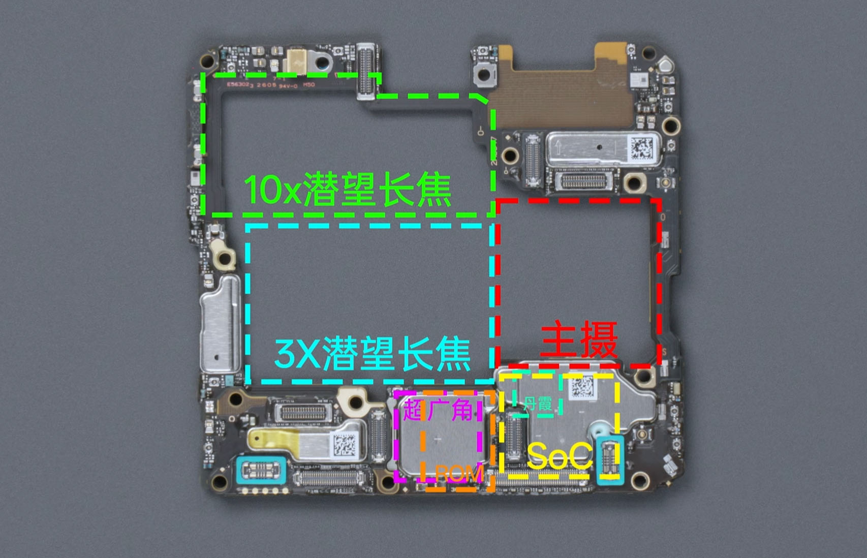 Блогер отметил, что для широкоугольной камеры и сенсора Danxia 2 не хватило места для размещения их на теплоотводящей пластине дисплея, из-за чего их пришлось крепить прямо поверх чипсета и модулей памяти. Предвидя проблемы с нагревом этих модулей, инженеры OPPO нанесли на ширик термоизоляционный слой, а Danxia 2 «подвесили» над SoC, оставив небольшую воздушную прослойку.