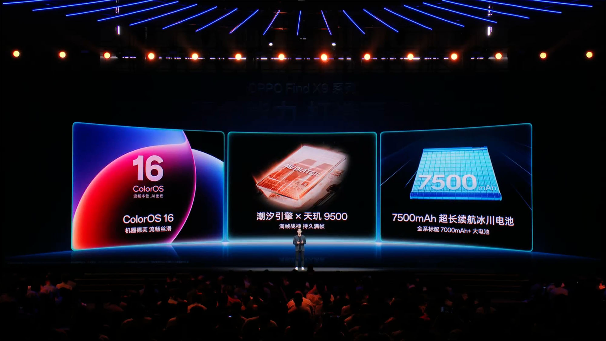 В рамках презентации чипа MediaTek Dimensity 9500 состоялось небольшое выступление представителя OPPO, в ходе которого был частично раскрыт дизайн смартфонов и их начинка. Компания действительно оказалась от шайбовидных блоков в пользу прямоугольного модуля в верхнем левом углу корпуса. И Find X9, и Find X9 Pro получат по три камеры (основа+ширик+зум), а также свежевышедший чипсет Dimensity 9500 и батареи на 7500 мАч, а из коробки устройства будут работать на свежей оболочке ColorOS 16.