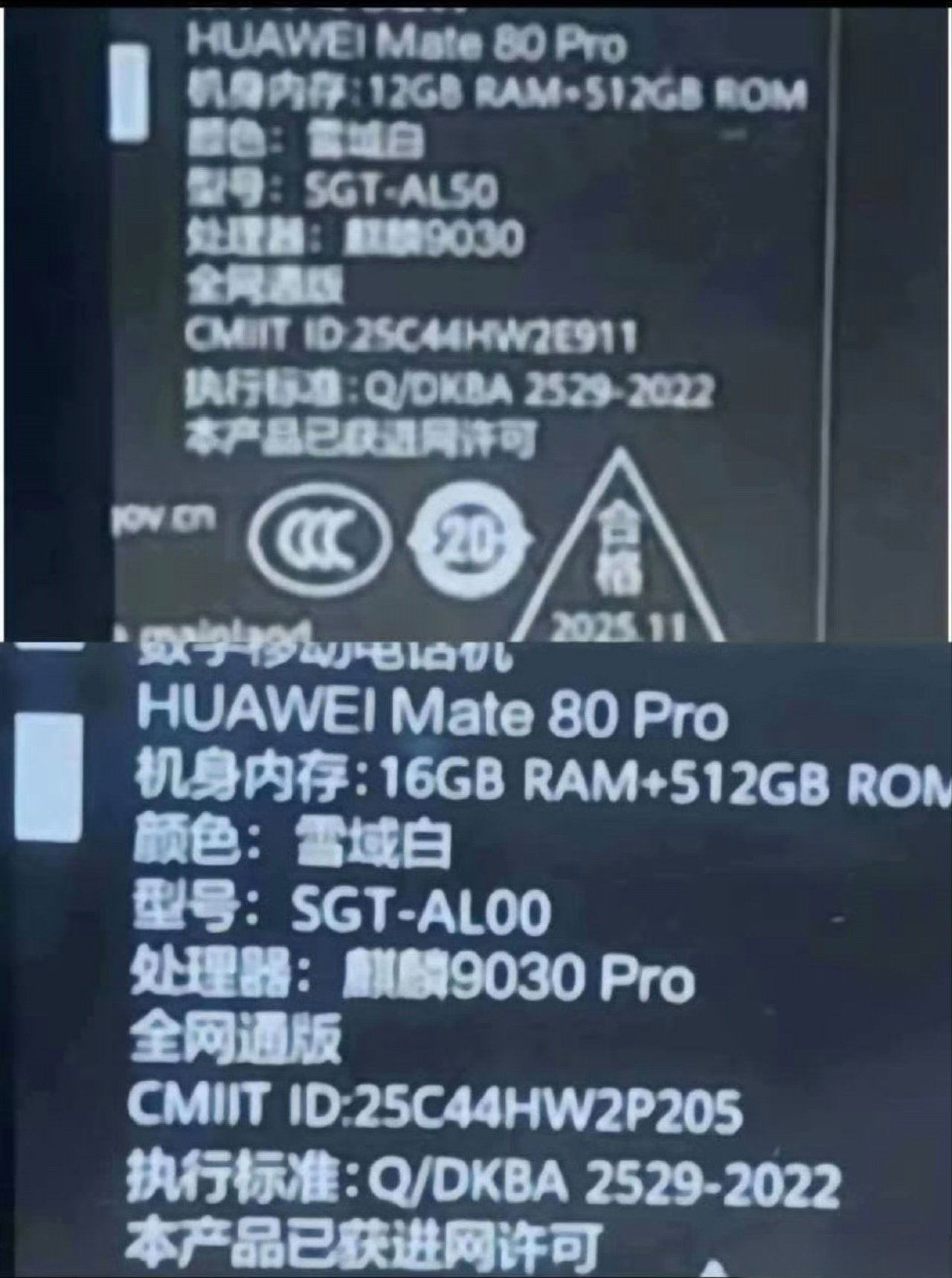 Из перечисления на коробках видно, что 12-ГБ версия Huawei Mate 80 Pro получит чипсет HiSilicon Kirin 9030, а 16-ГБ версия — Kirin 9030 Pro. Это первый чипсет Kirin со словом Pro в названии, поэтому сложно предположить, чем он будет отличаться от обычного Kirin 9030. Ранее ходили слухи, что 9030 будет доступен в восьмиядерном (1+3+4) и девятиядерном исполнениях (1+4+4); возможно, 9030 Pro — это как раз девятиядерная версия.