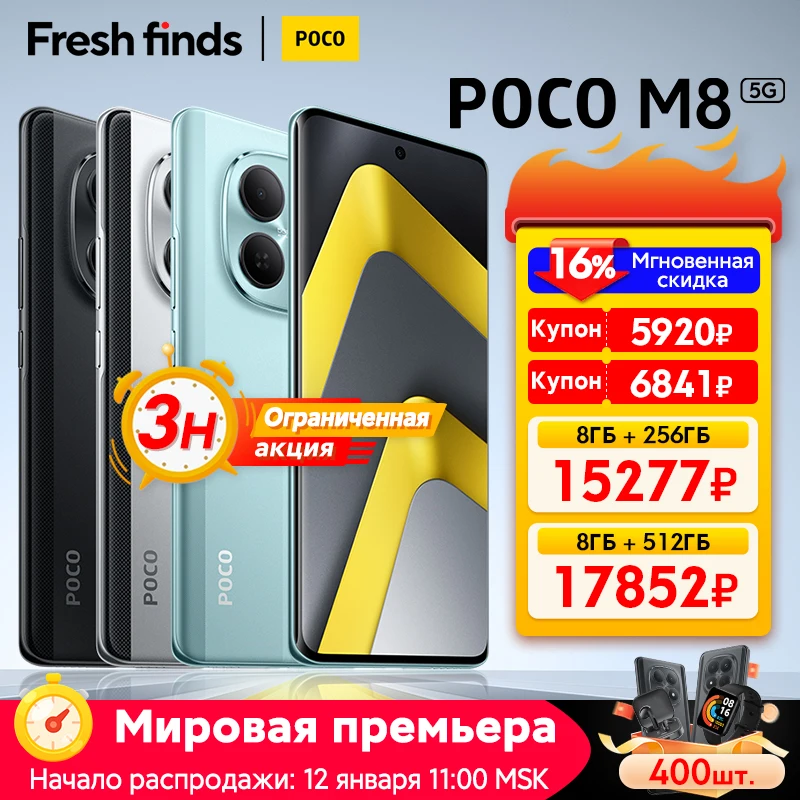 Базовый же POCO M8 станет хитом ценового сегмента около 15 000 рублей, предложив почти все преимущества «прошки», но уже с редким экраном-водопадом диагональю 6,77" и чипсетом Snapdragon 6 Gen 3. У аппарата заметно проще водозащита (IP66) и скромнее батарея (5520 мАч), но при этом сохранены и стереодинамики, и NFC-модуль, и ИК-пульт, и сканер пальца в экране. Обе новинки имеют комплектные чехлы и зарядные устройства.